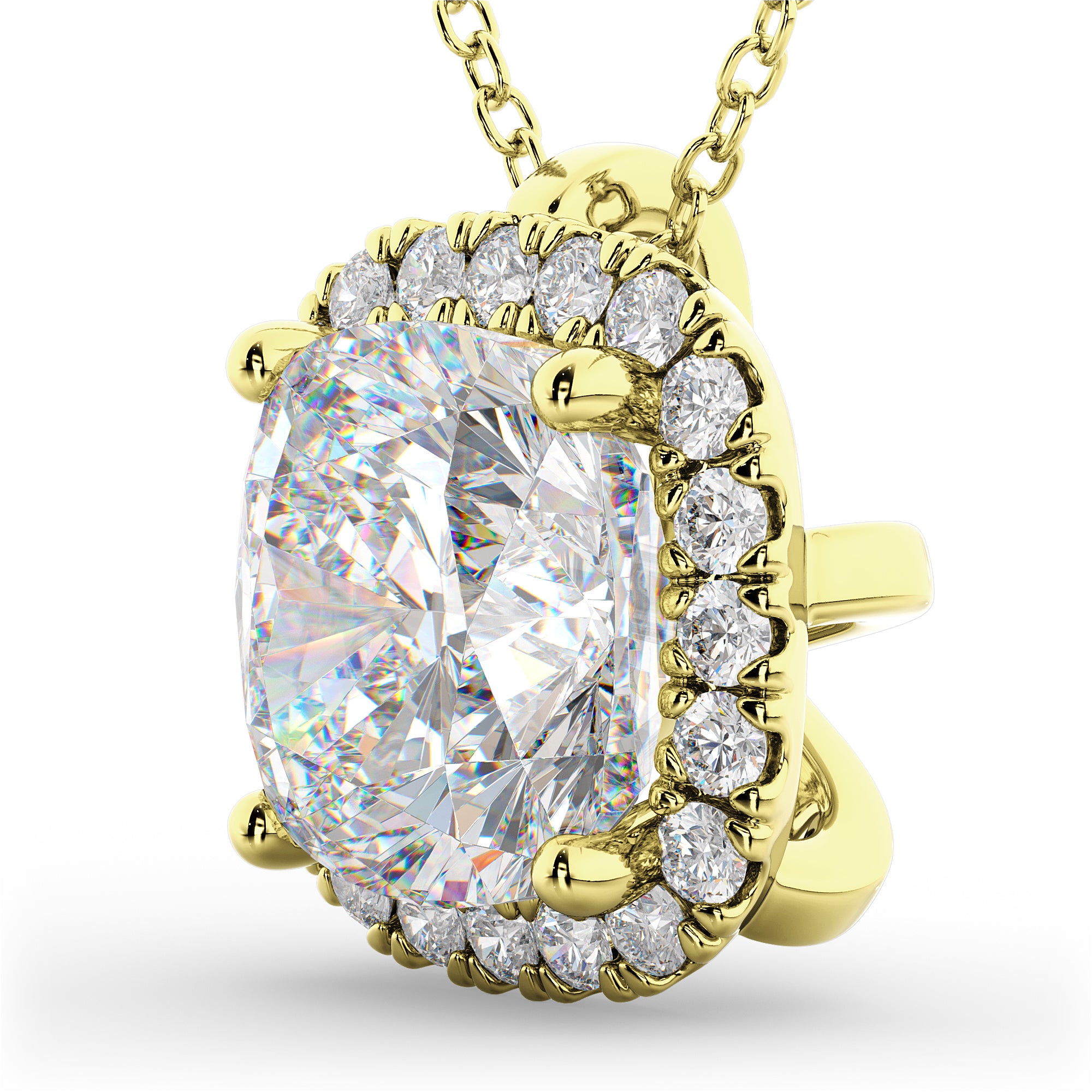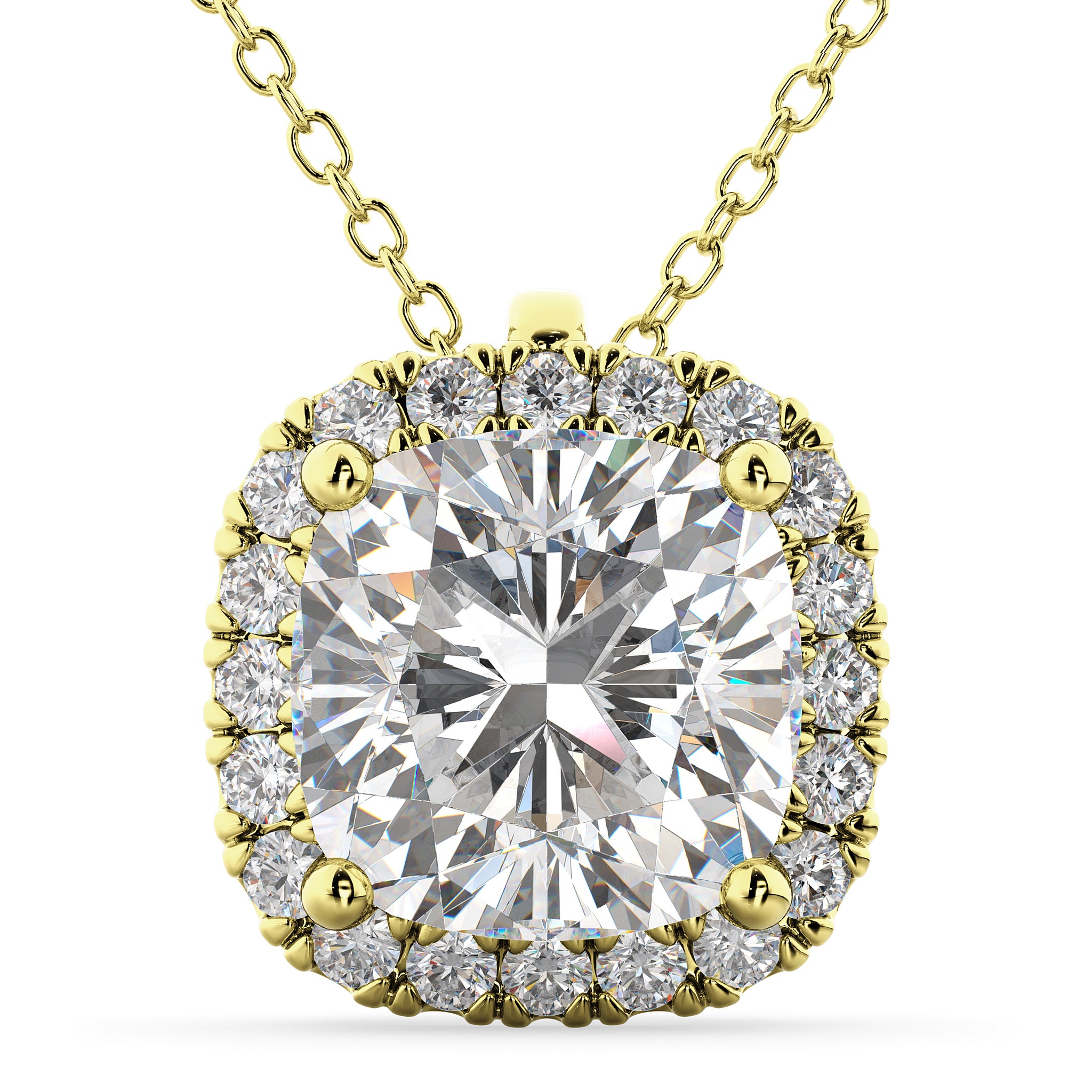 Halo Moissanite Cushion Cut Pendant Necklace 14k Yellow Gold (1.76ct)