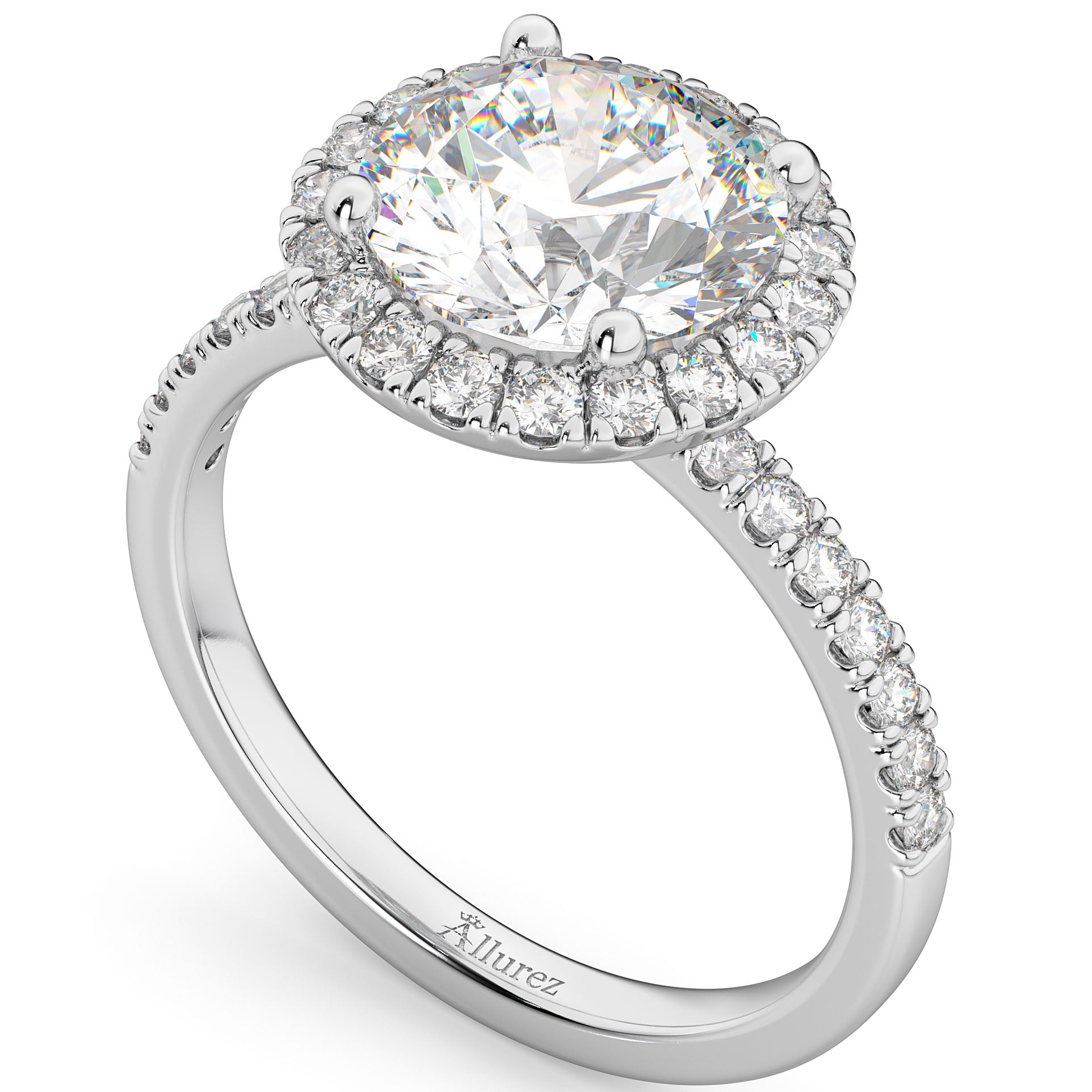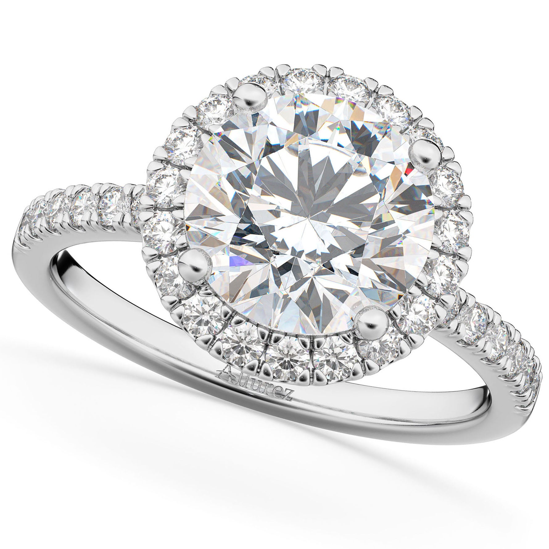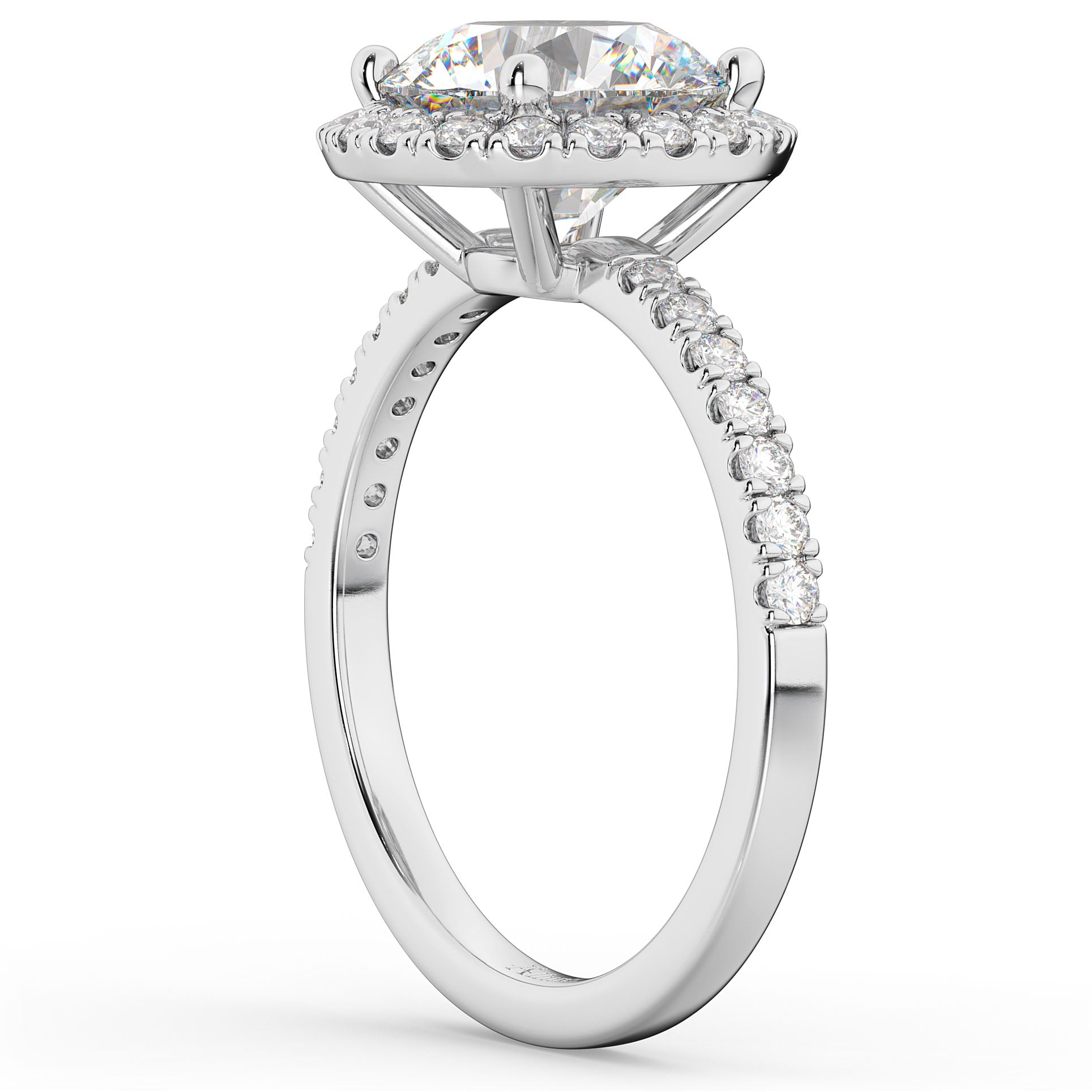 Halo Moissanite & Diamond Engagement Ring 18K White Gold 2.10ct