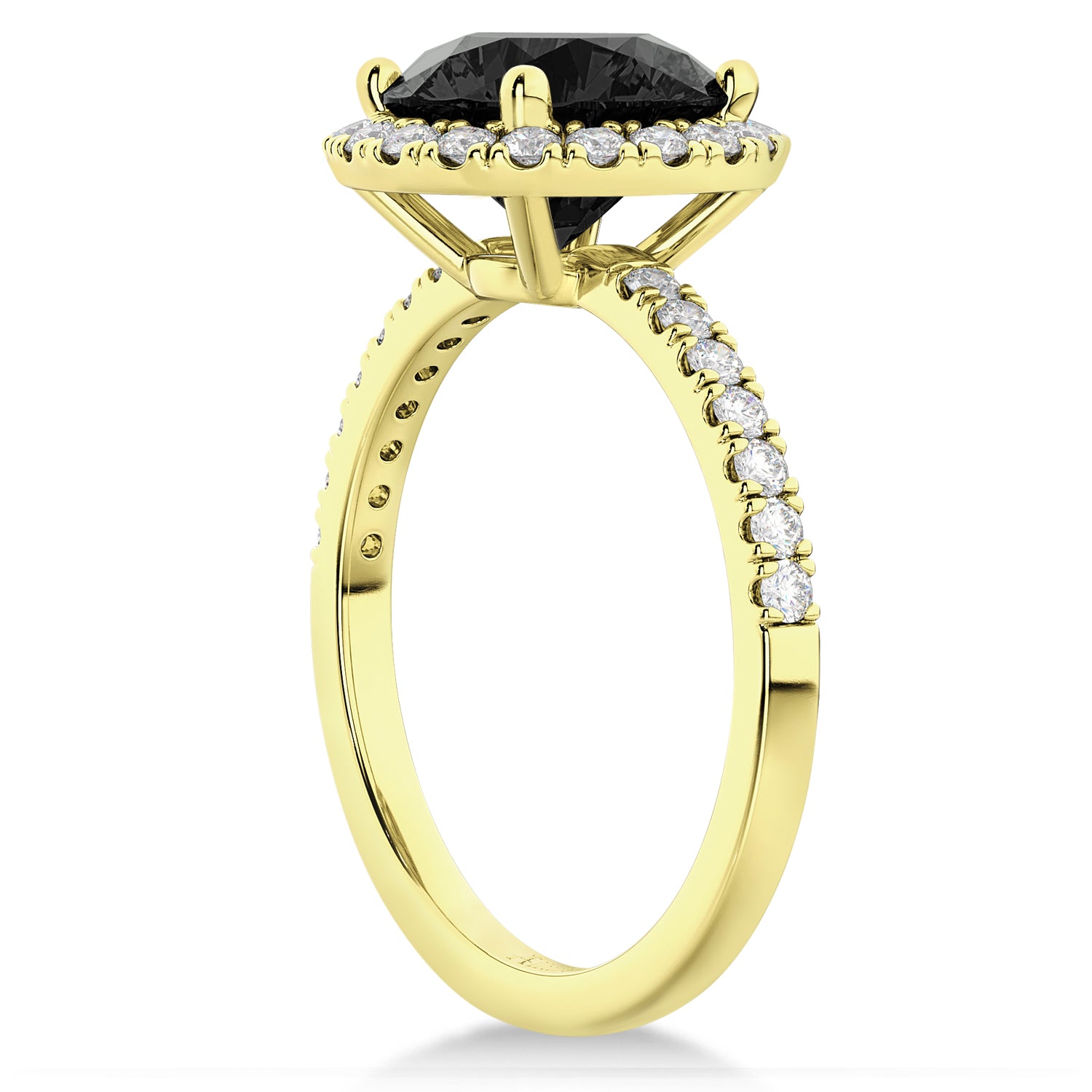 Halo Onyx & Diamond Engagement Ring 14K Yellow Gold 2.90ct