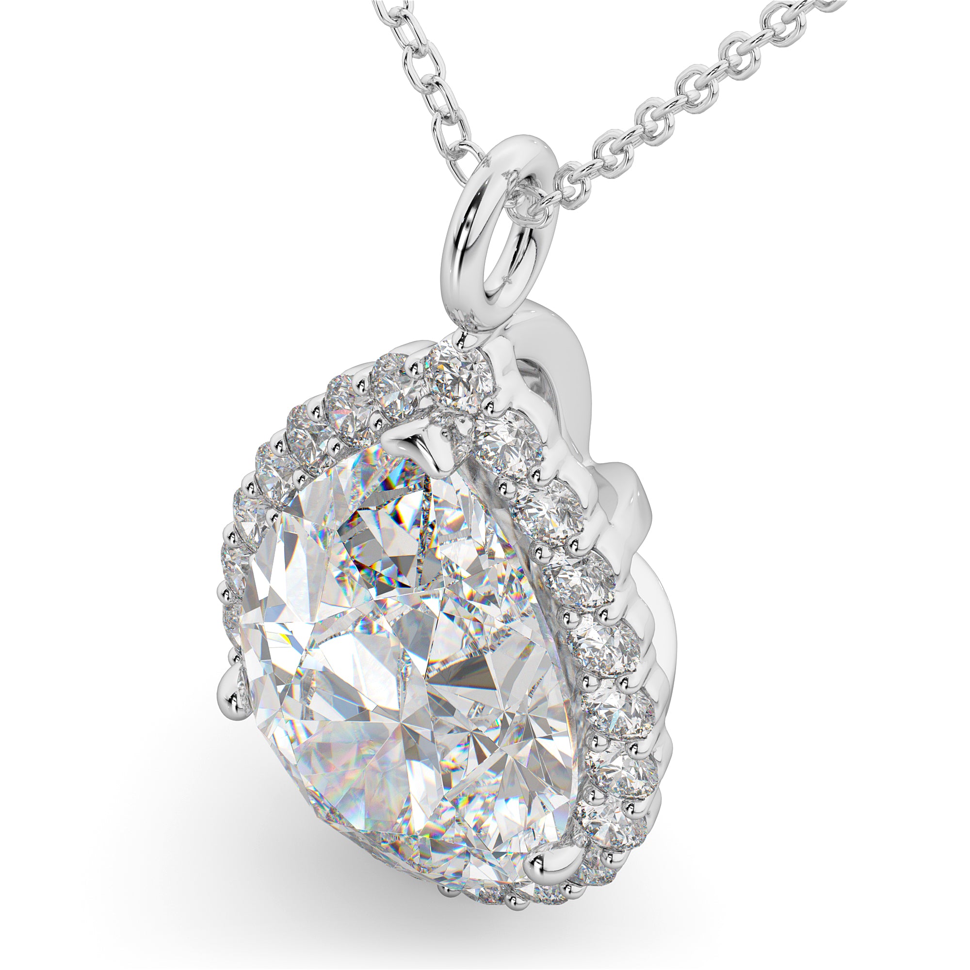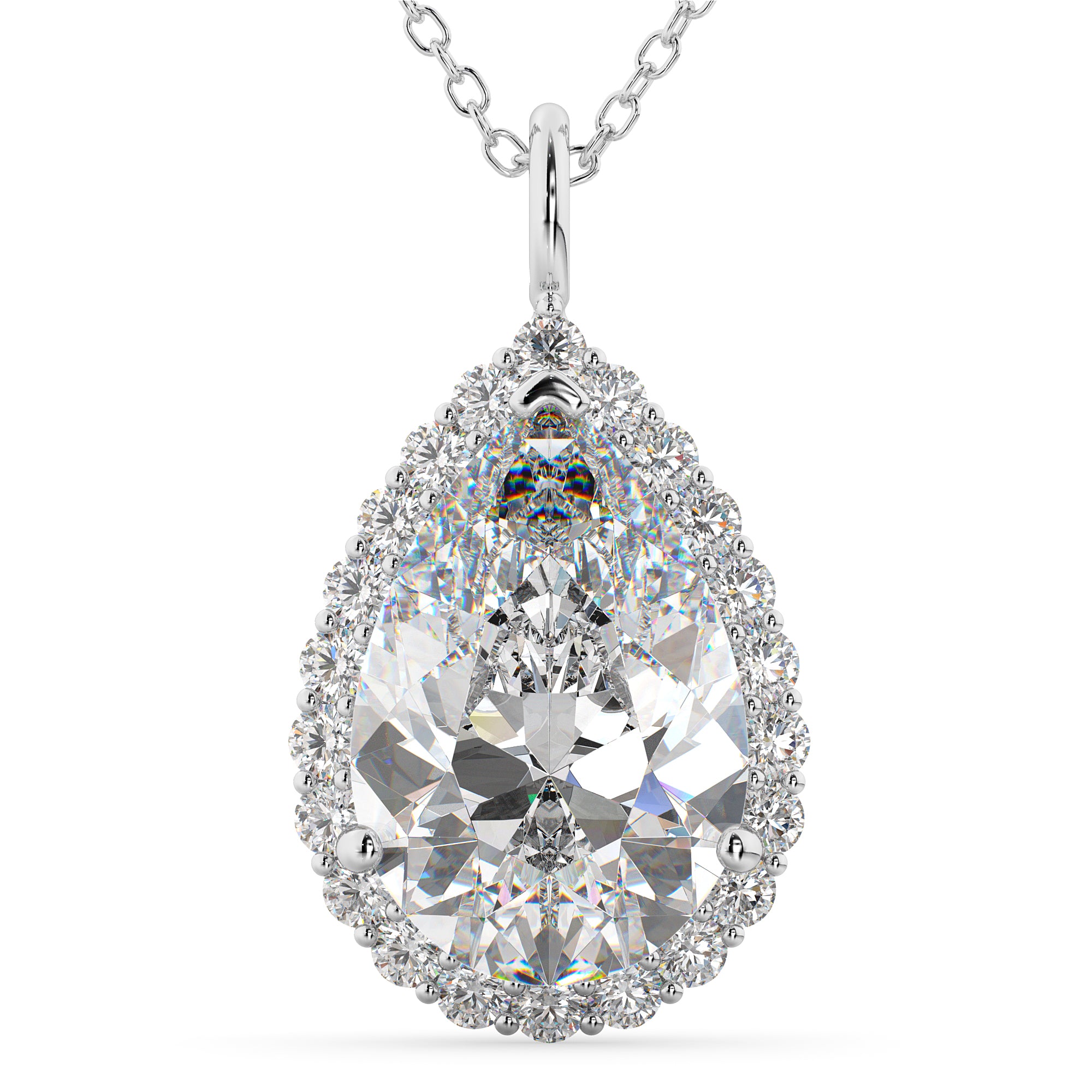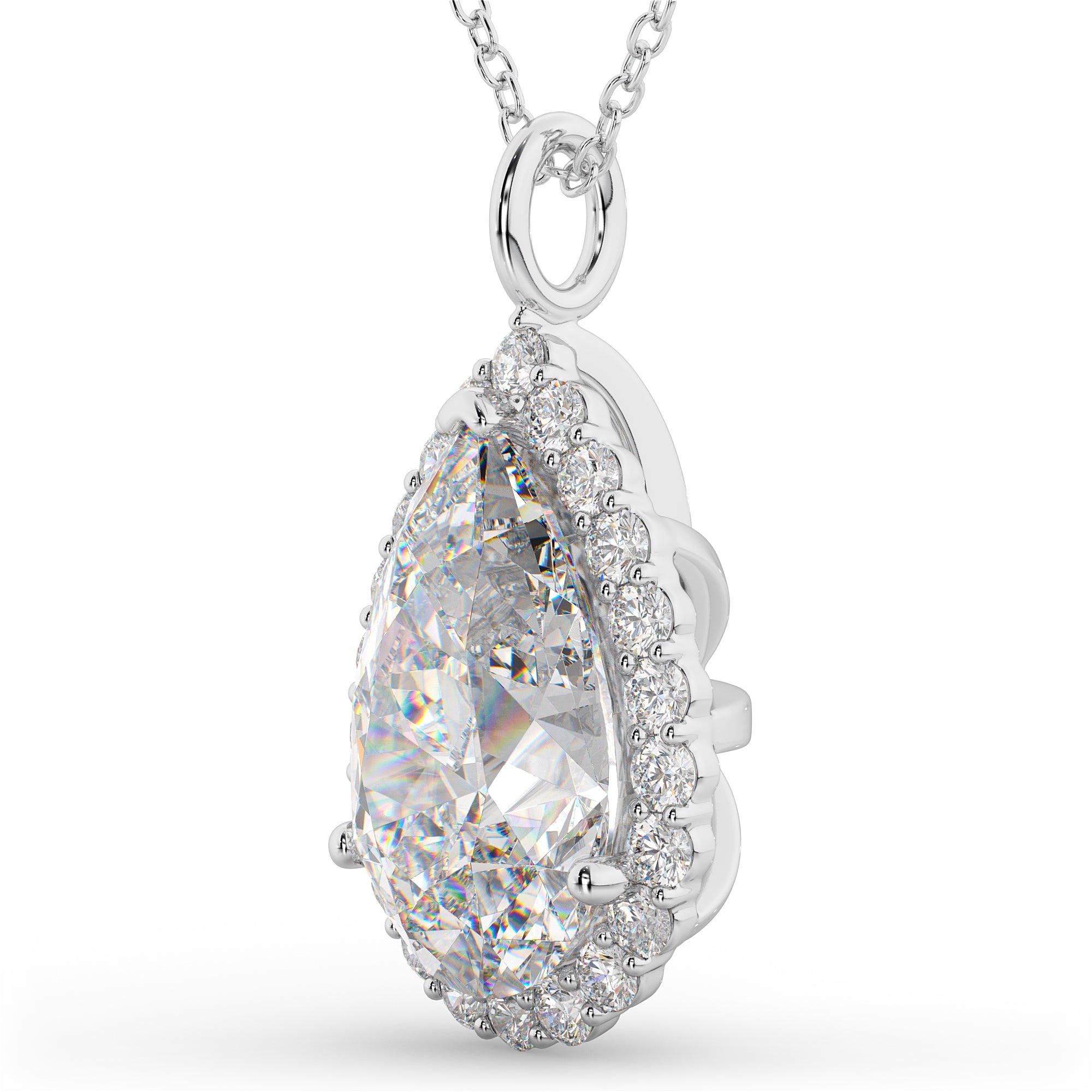 Halo Pear Shaped Lab Grown Diamond Necklace 14k White Gold (4.69ct)