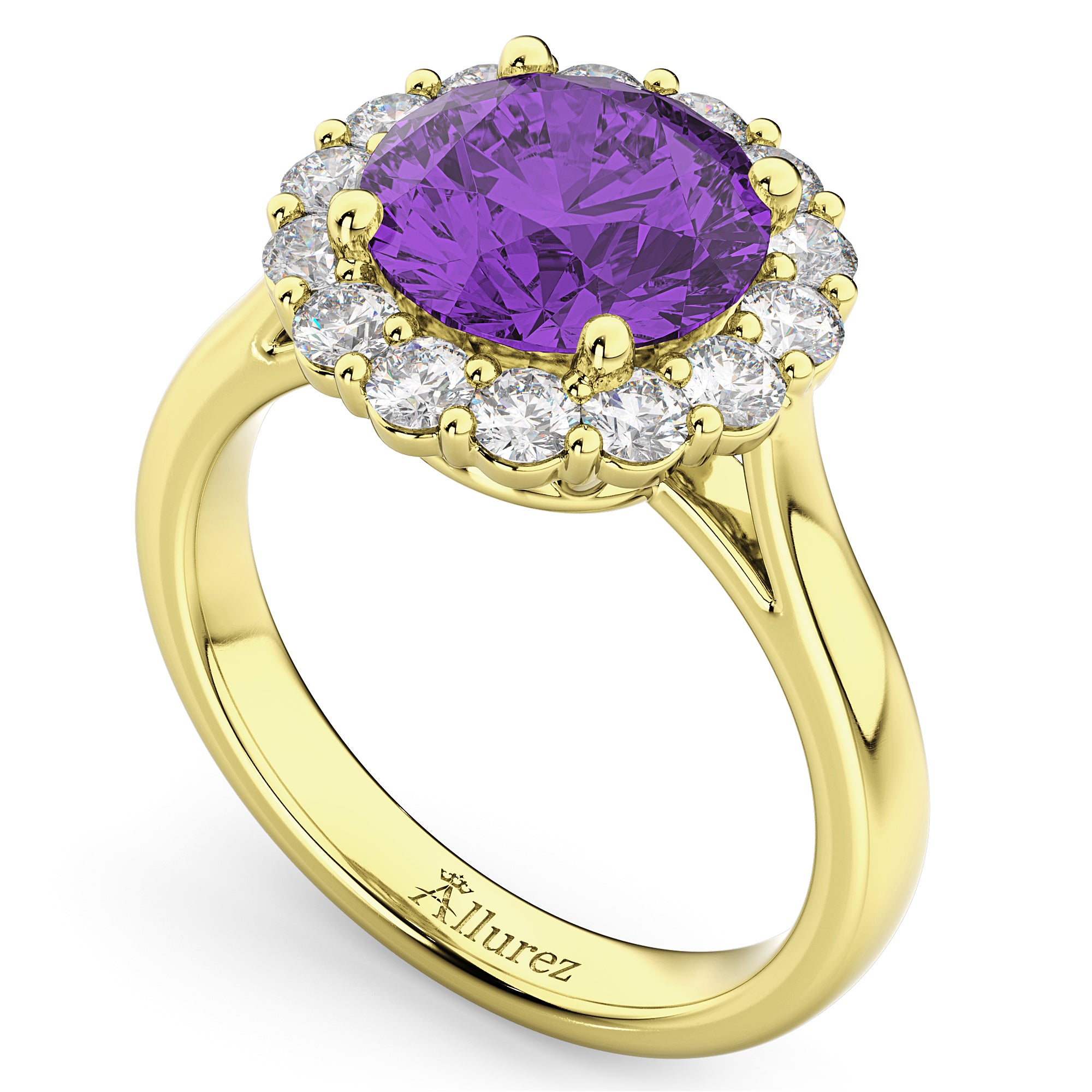 Halo Round Amethyst & Diamond Engagement Ring 14K Yellow Gold 3.26ct