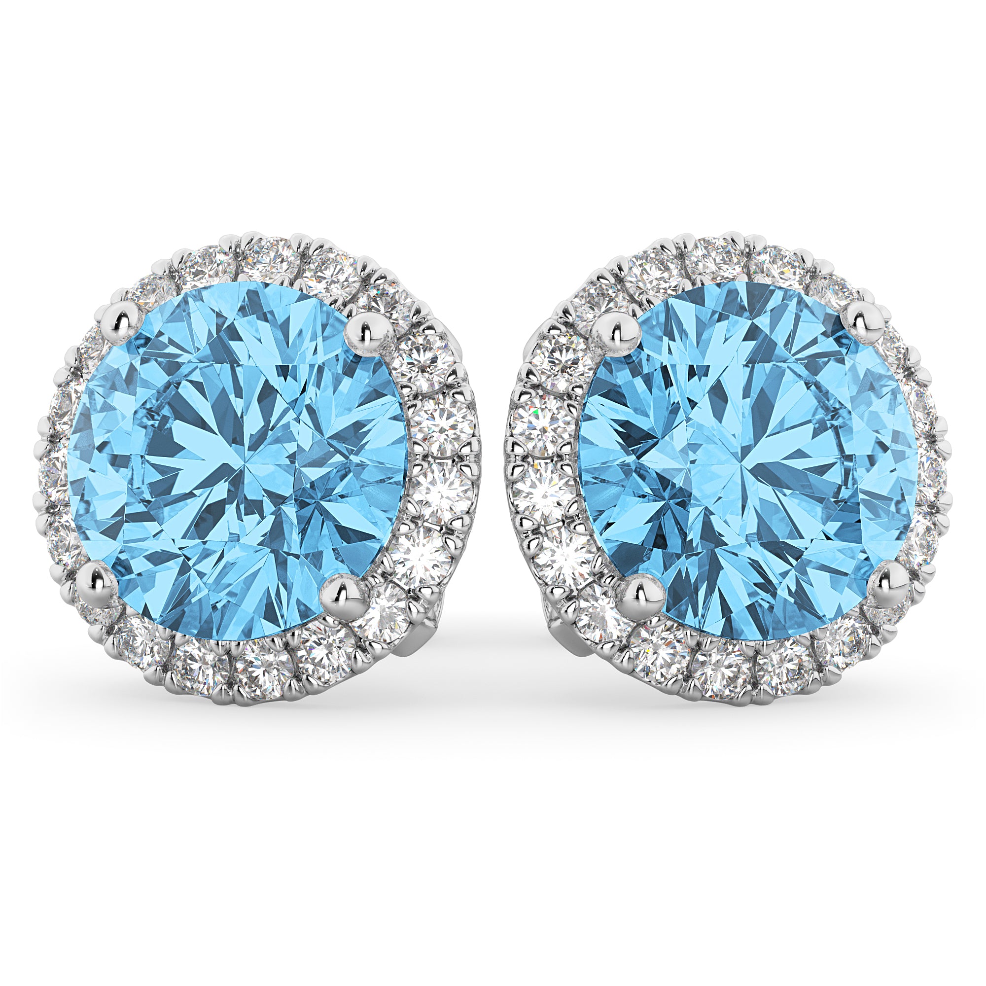 Halo Round Blue Topaz & Diamond Earrings 14k White Gold (5.57ct)