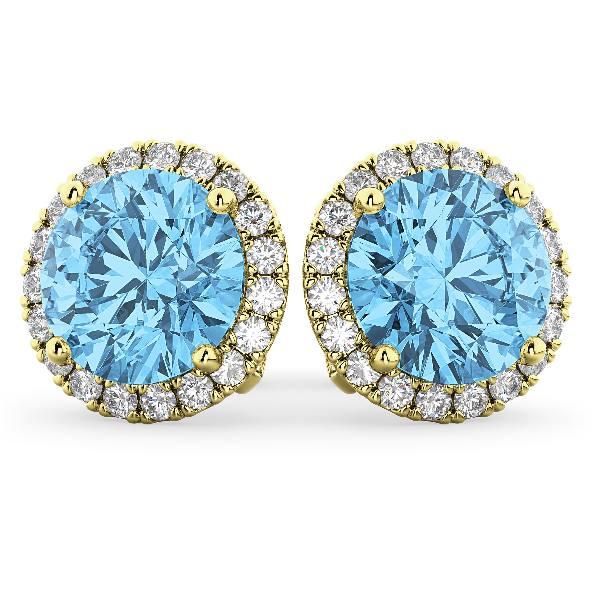 Halo Round Blue Topaz & Diamond Earrings 14k Yellow Gold (5.57ct)