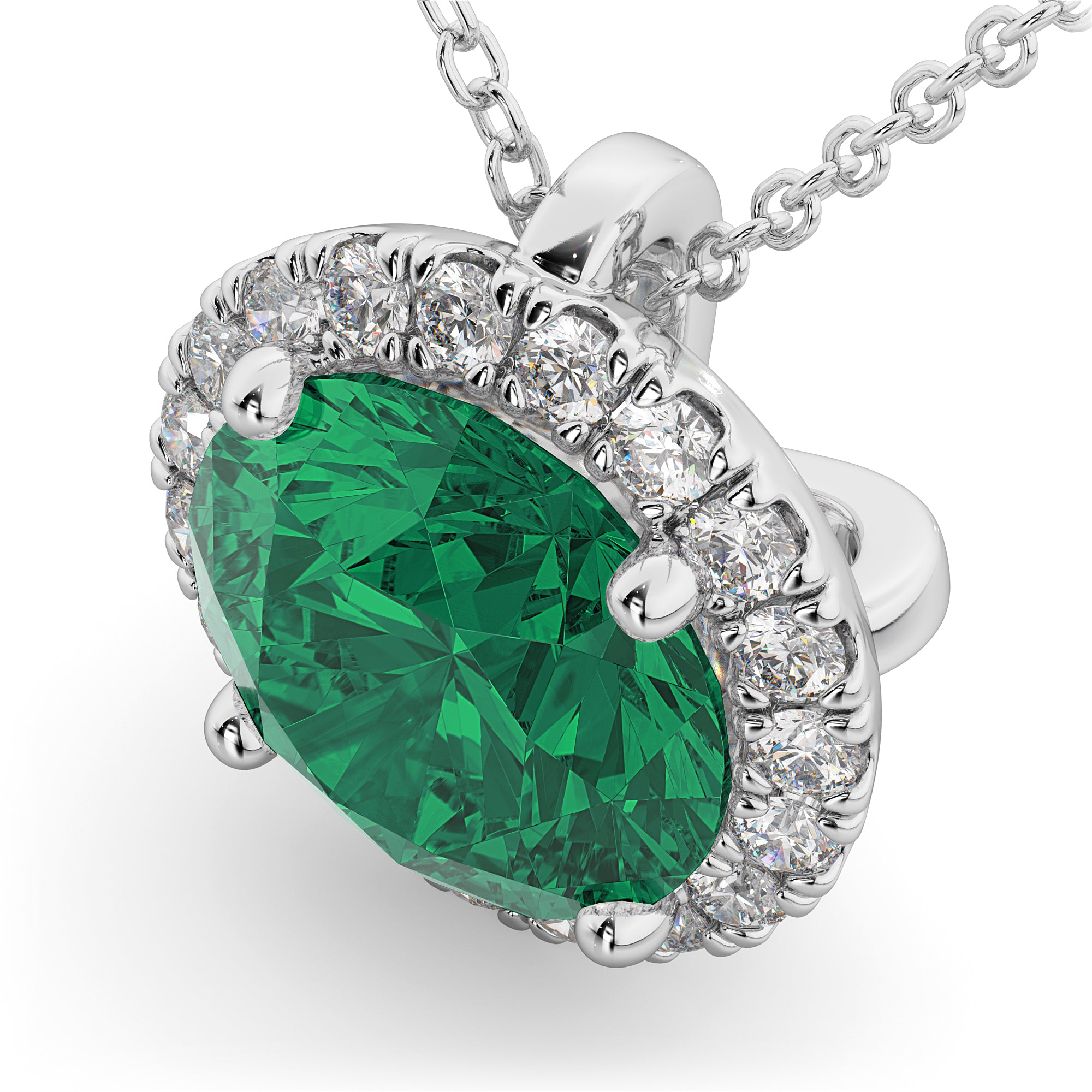 Halo Round Emerald & Diamond Pendant Necklace 14k White Gold (2.79ct)