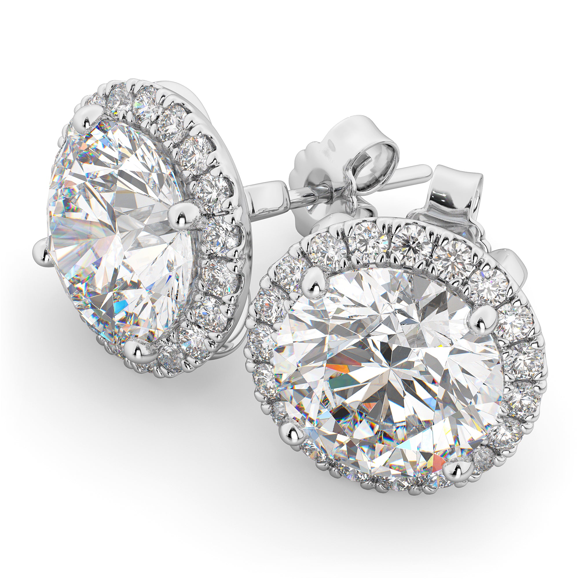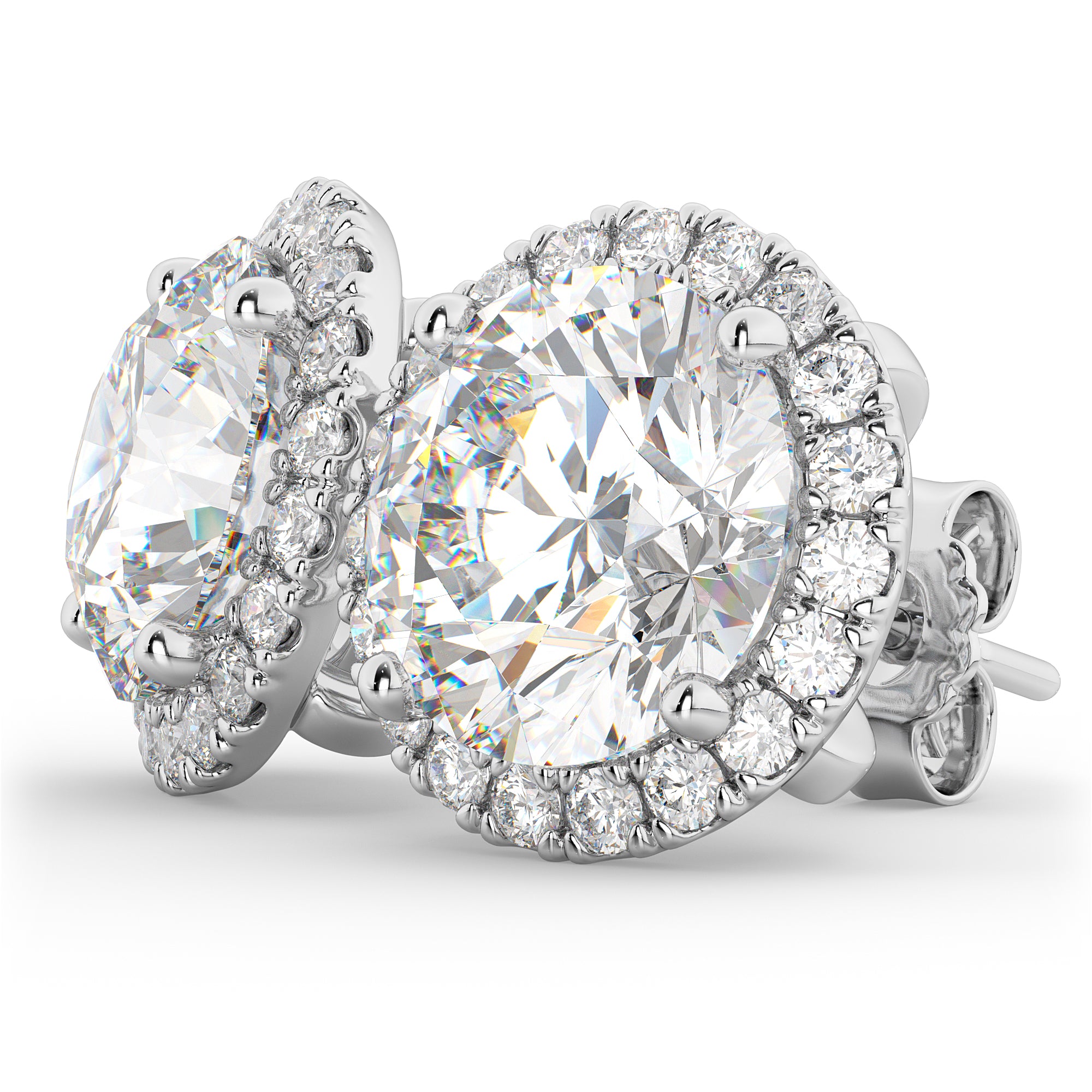 Halo Round Moissanite & Diamond Earrings 14k White Gold (3.77ct)