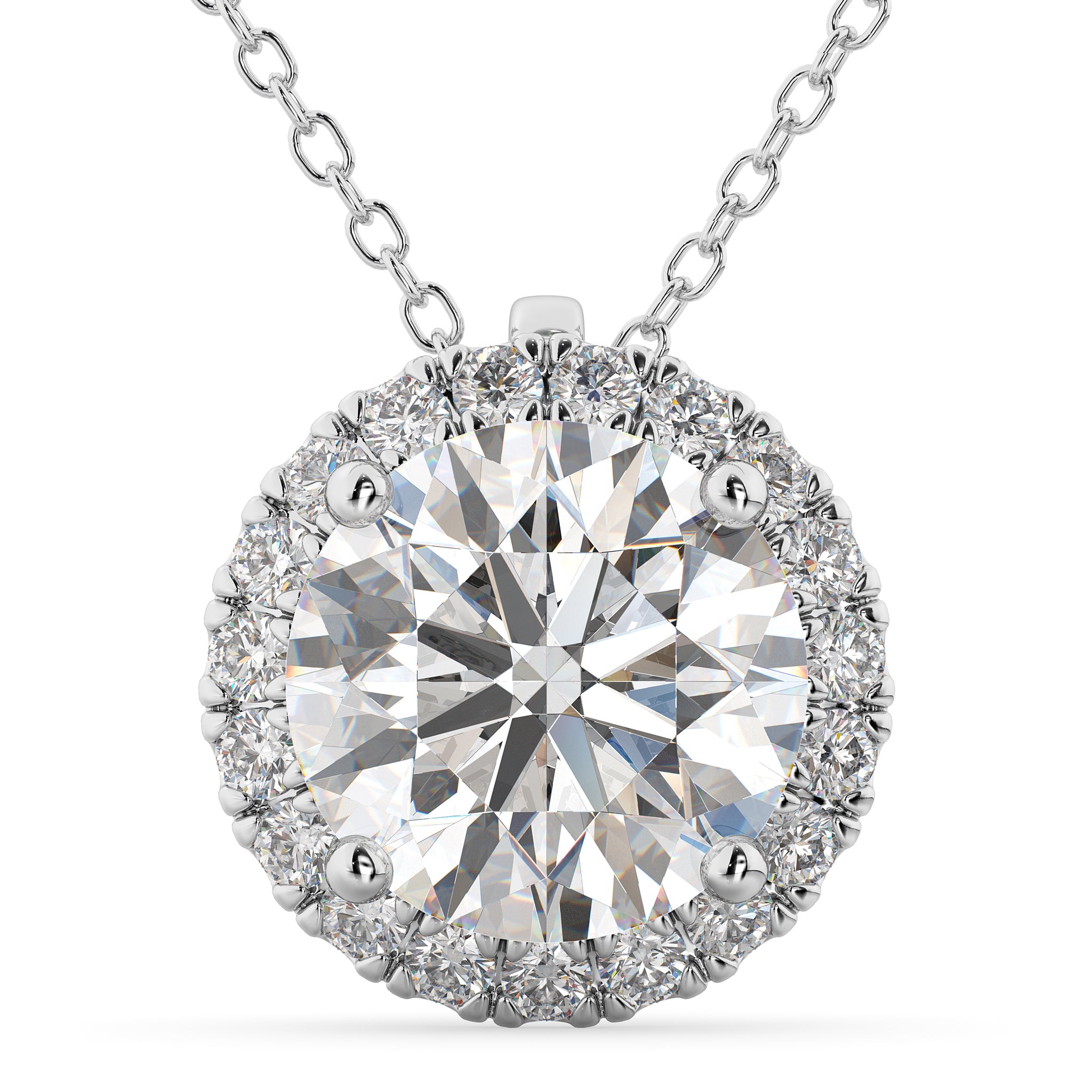 Halo Round Moissanite & Diamond Pendant Necklace 14k White Gold (1.89ct)