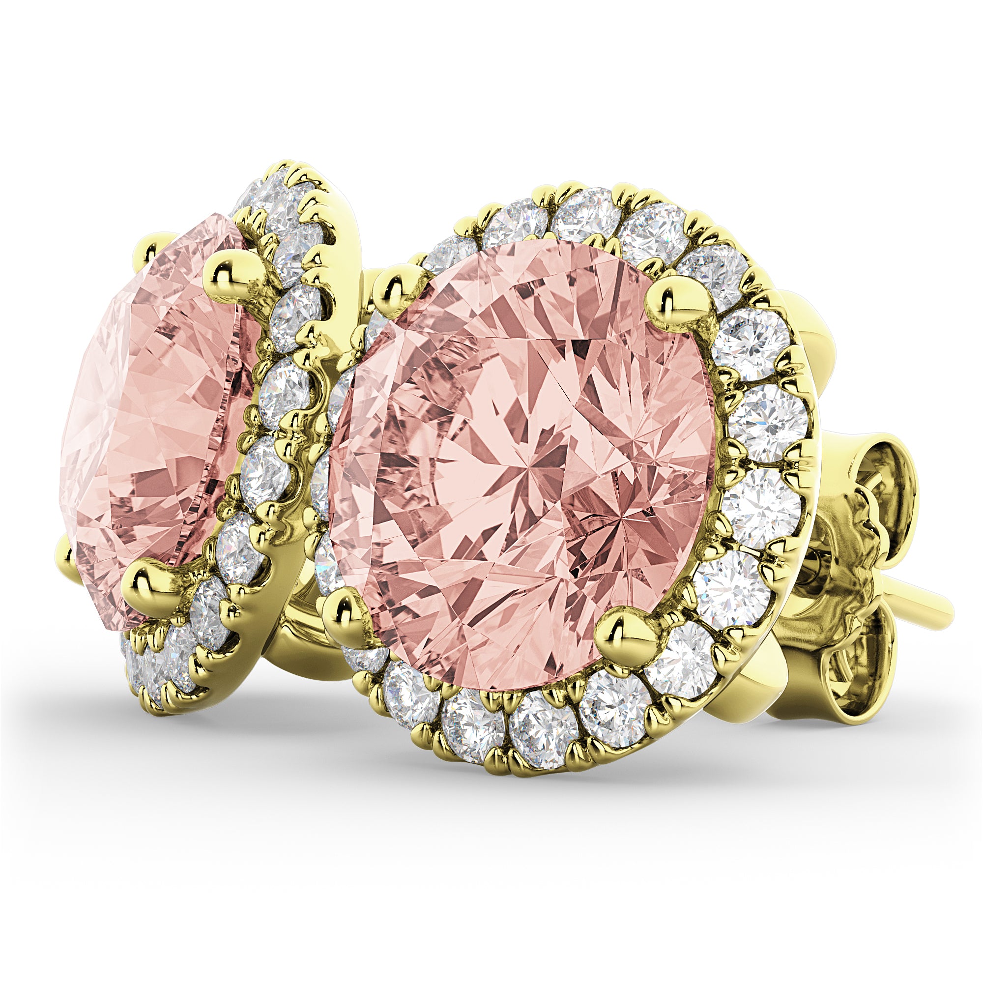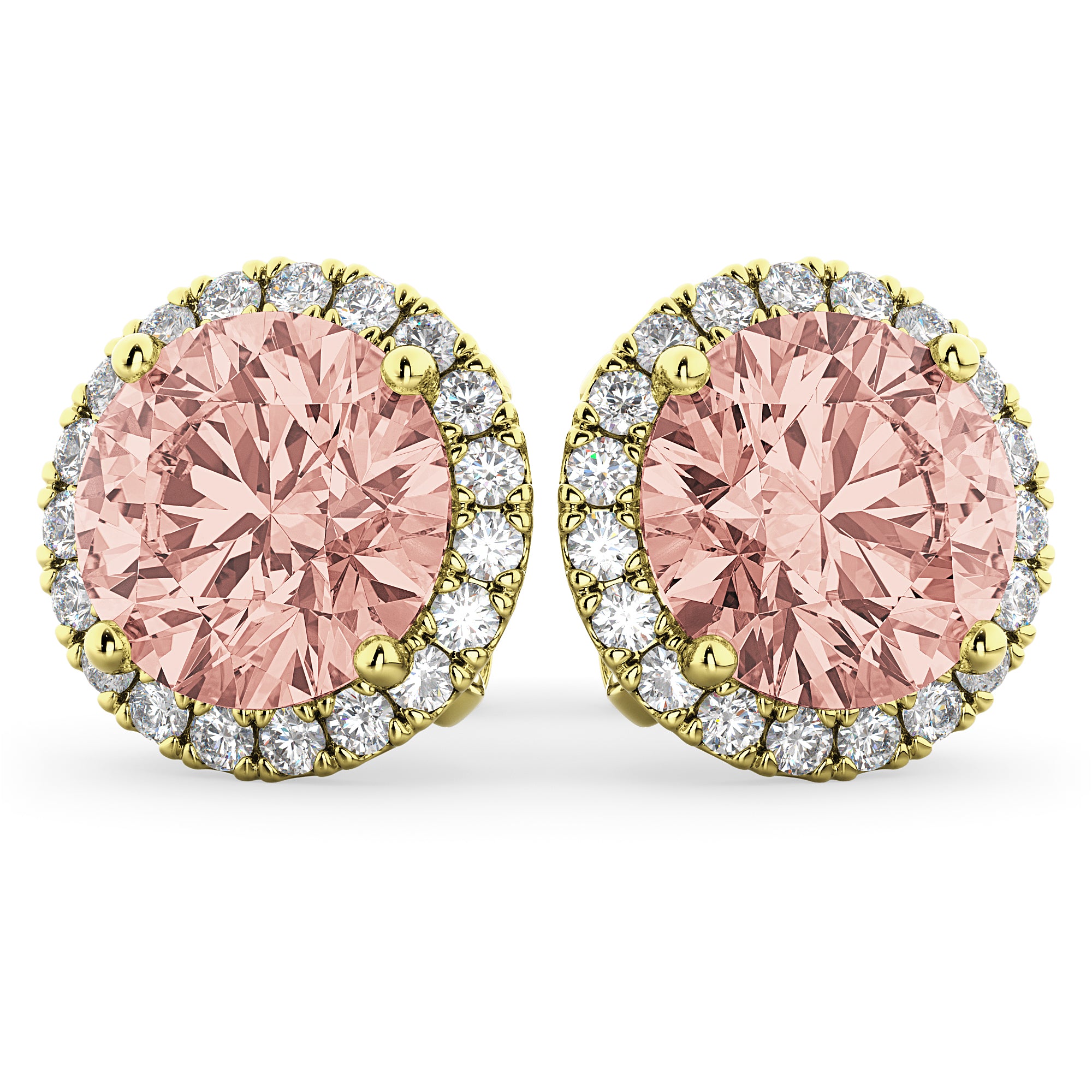 Halo Round Morganite & Diamond Earrings 14k Yellow Gold (4.17ct)