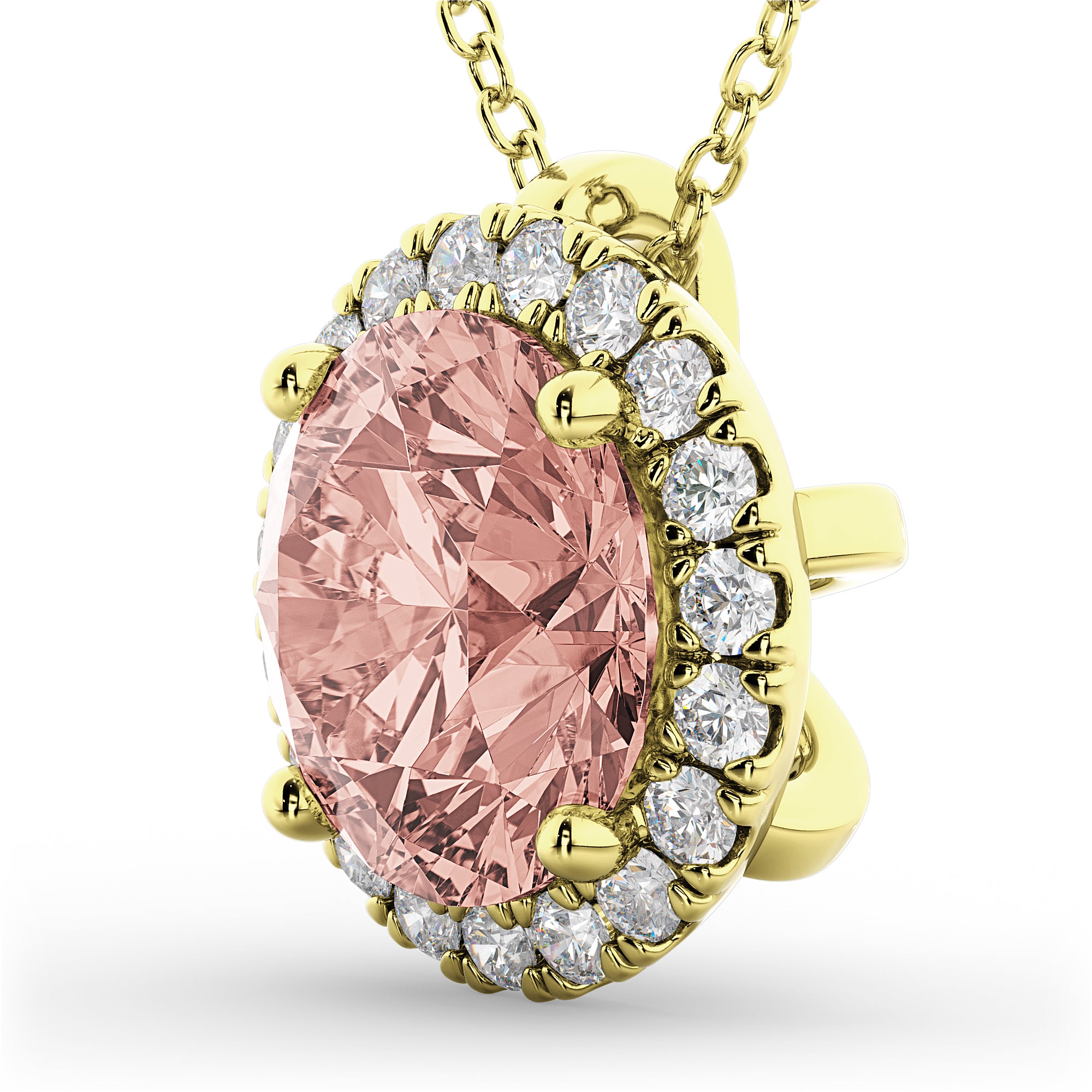 Halo Round Morganite & Diamond Pendant Necklace 14k Yellow Gold (2.09ct)