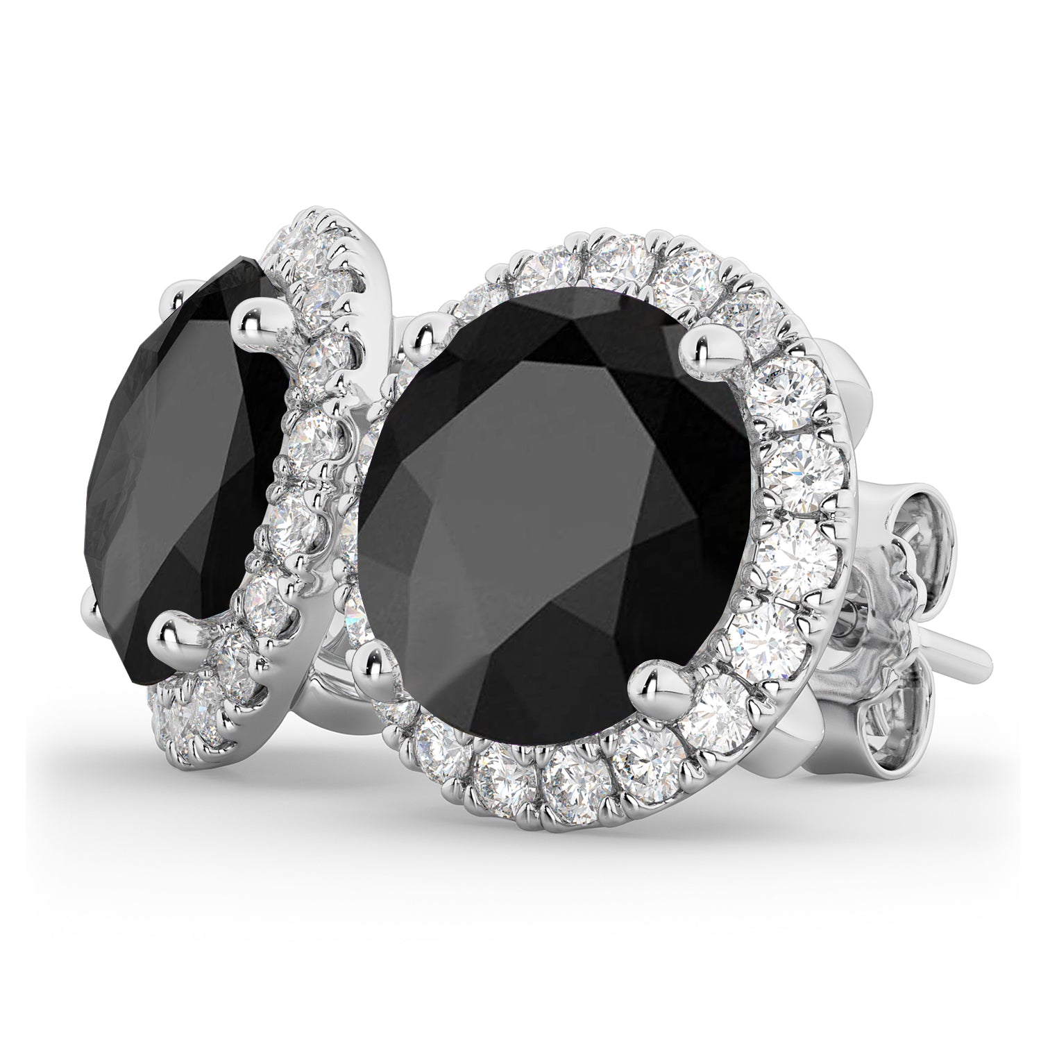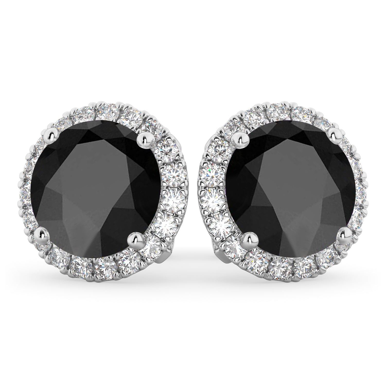Halo Round Onyx & Diamond Earrings 14k White Gold (5.57ct)
