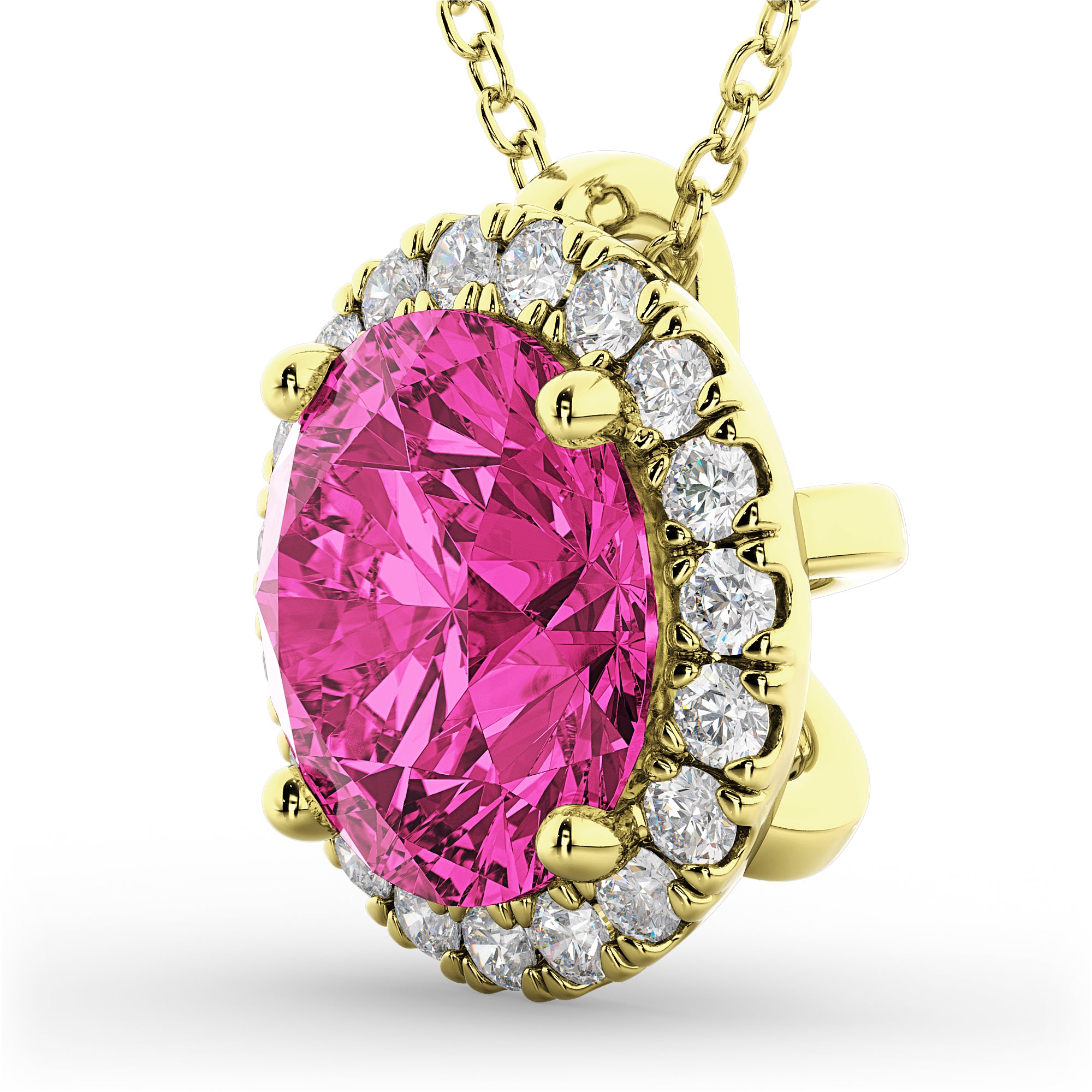 Halo Round Pink Tourmaline & Diamond Pendant Necklace 14k Yellow Gold (2.29ct)