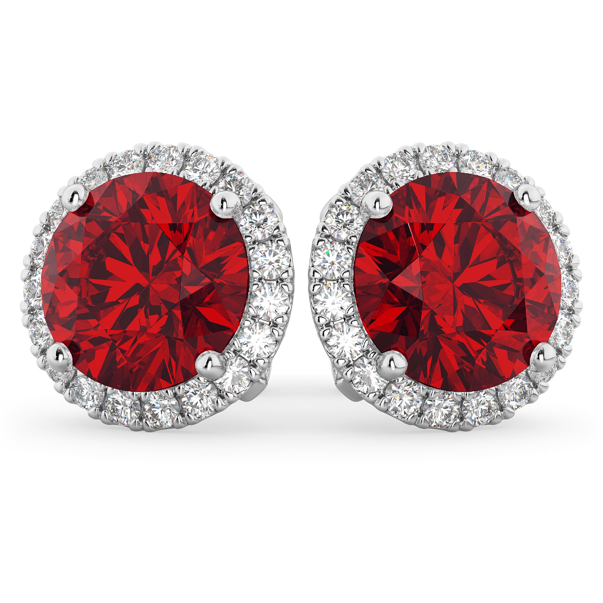Halo Round Ruby & Diamond Earrings 14k White Gold (5.17ct)
