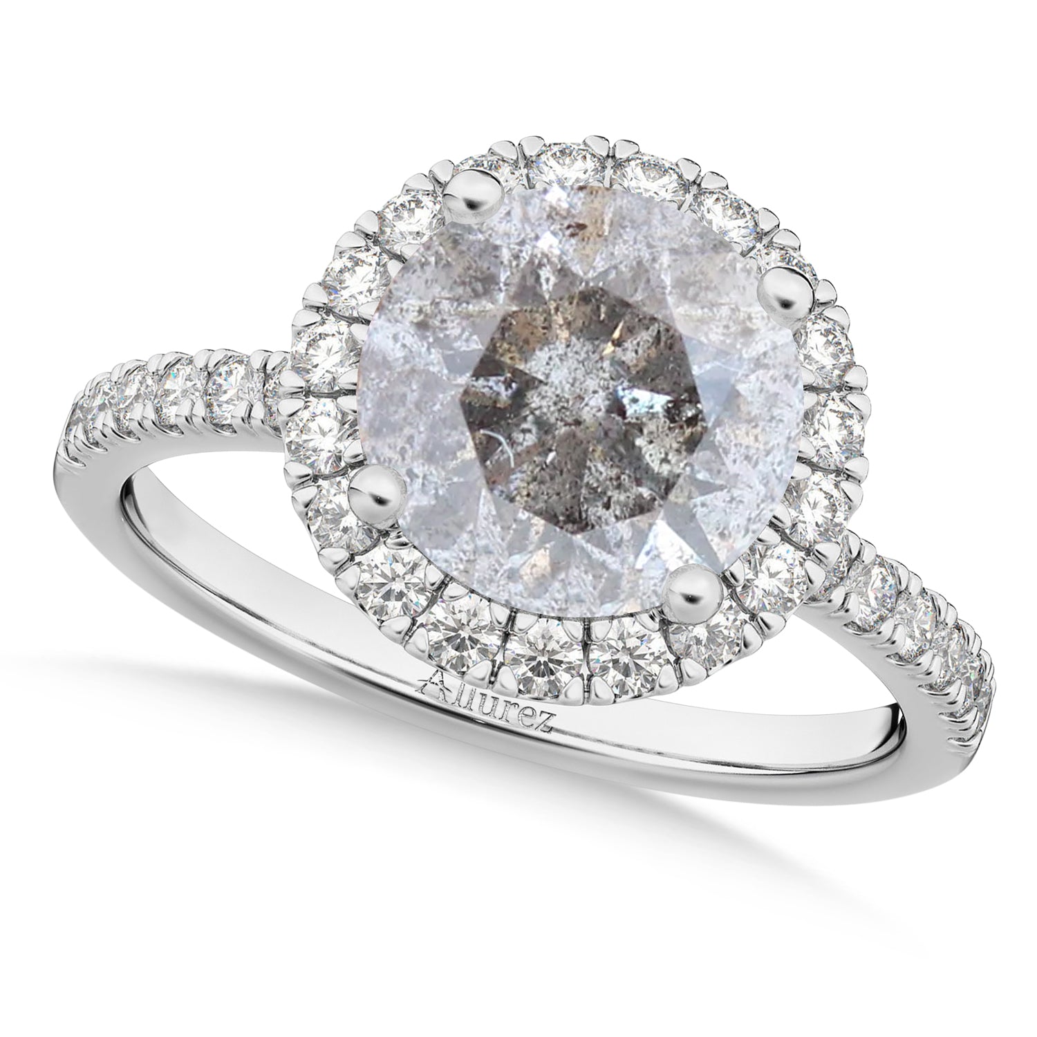 Halo Salt & Pepper & White Diamond Engagement Ring 14K White Gold (2.50ct)