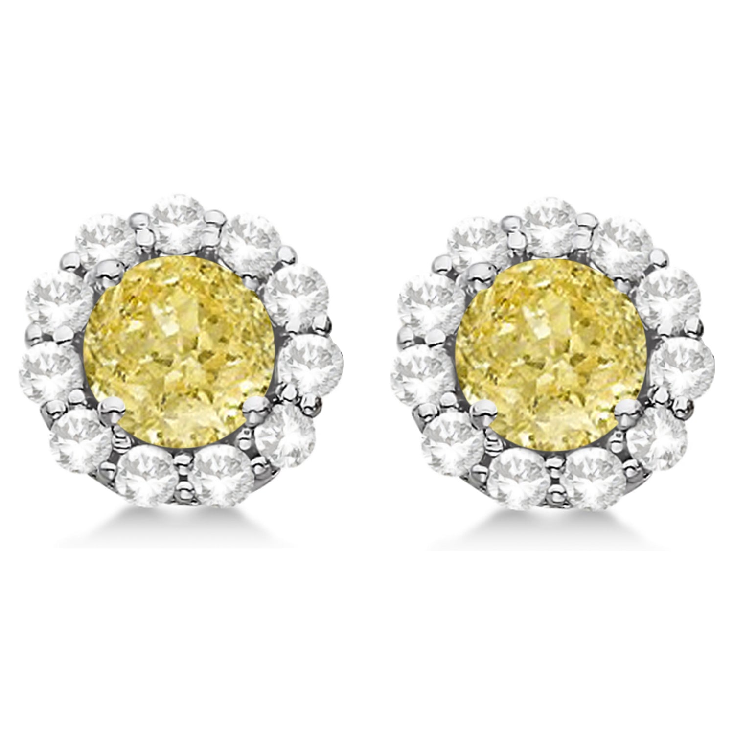 Halo Yellow Diamond & Diamond Stud Earrings 14kt White Gold 2.02ct.