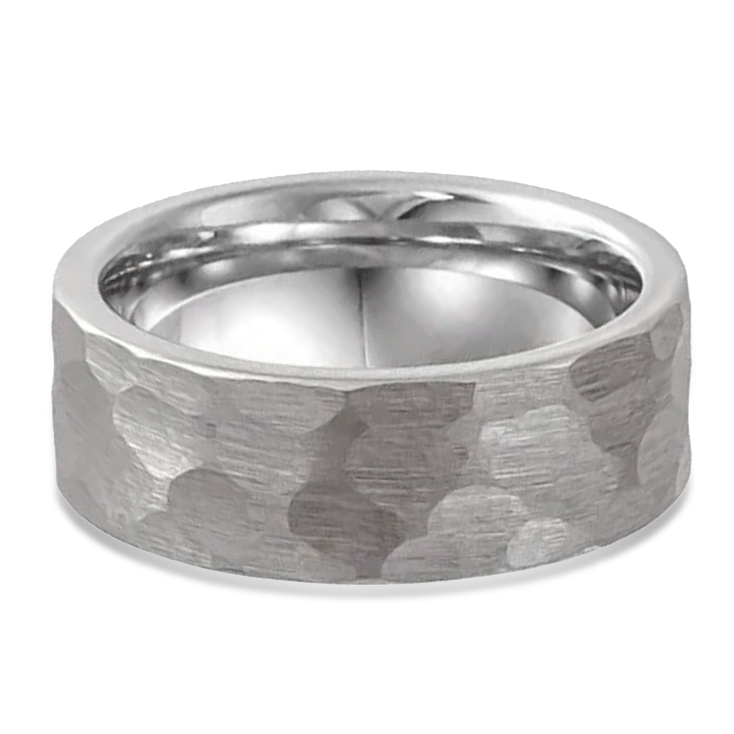 Hammered Finish Wedding Ring Band 18K White Gold PVD Tungsten (8mm)
