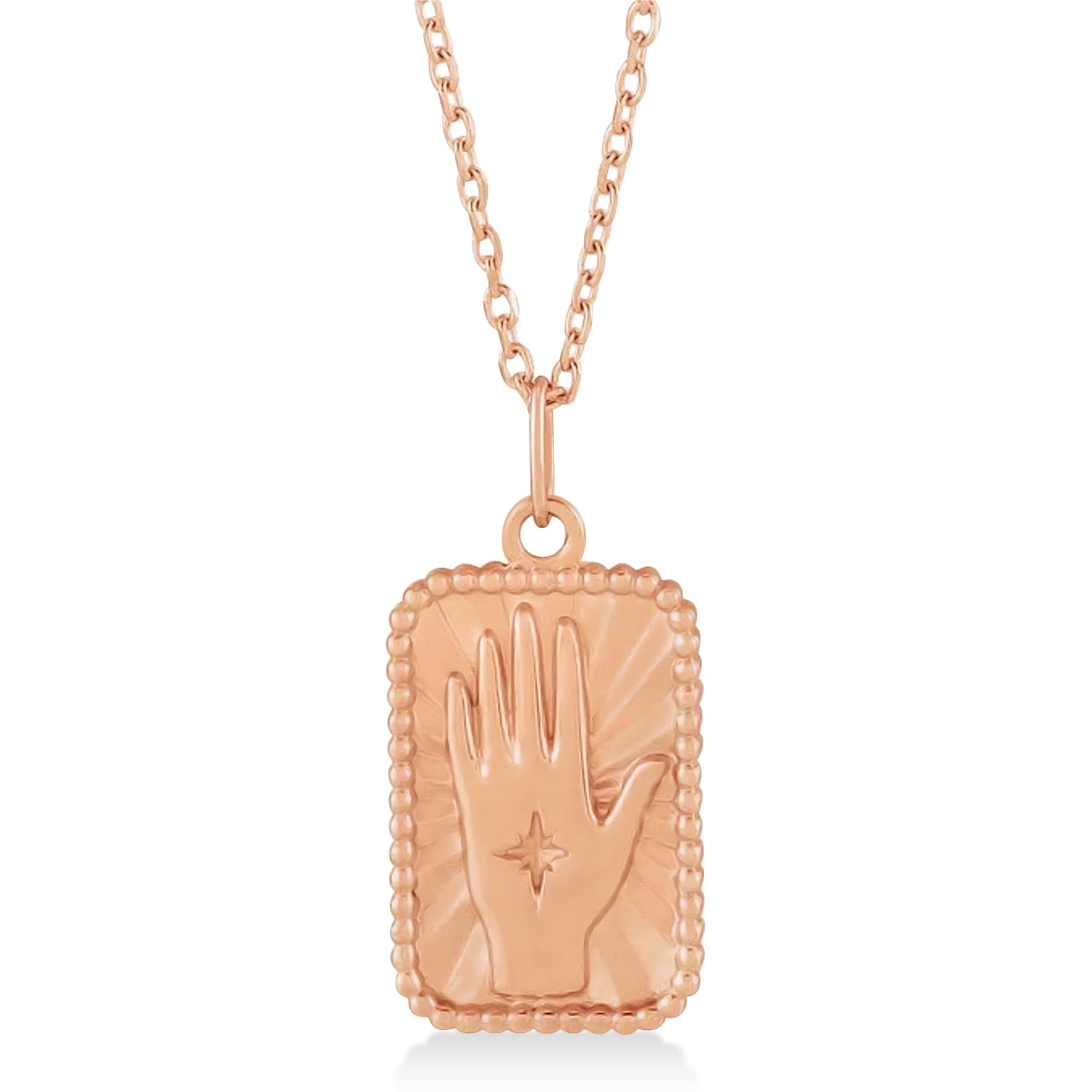 Hamsa Hand Tarot Pendant Necklace 14k Rose Gold