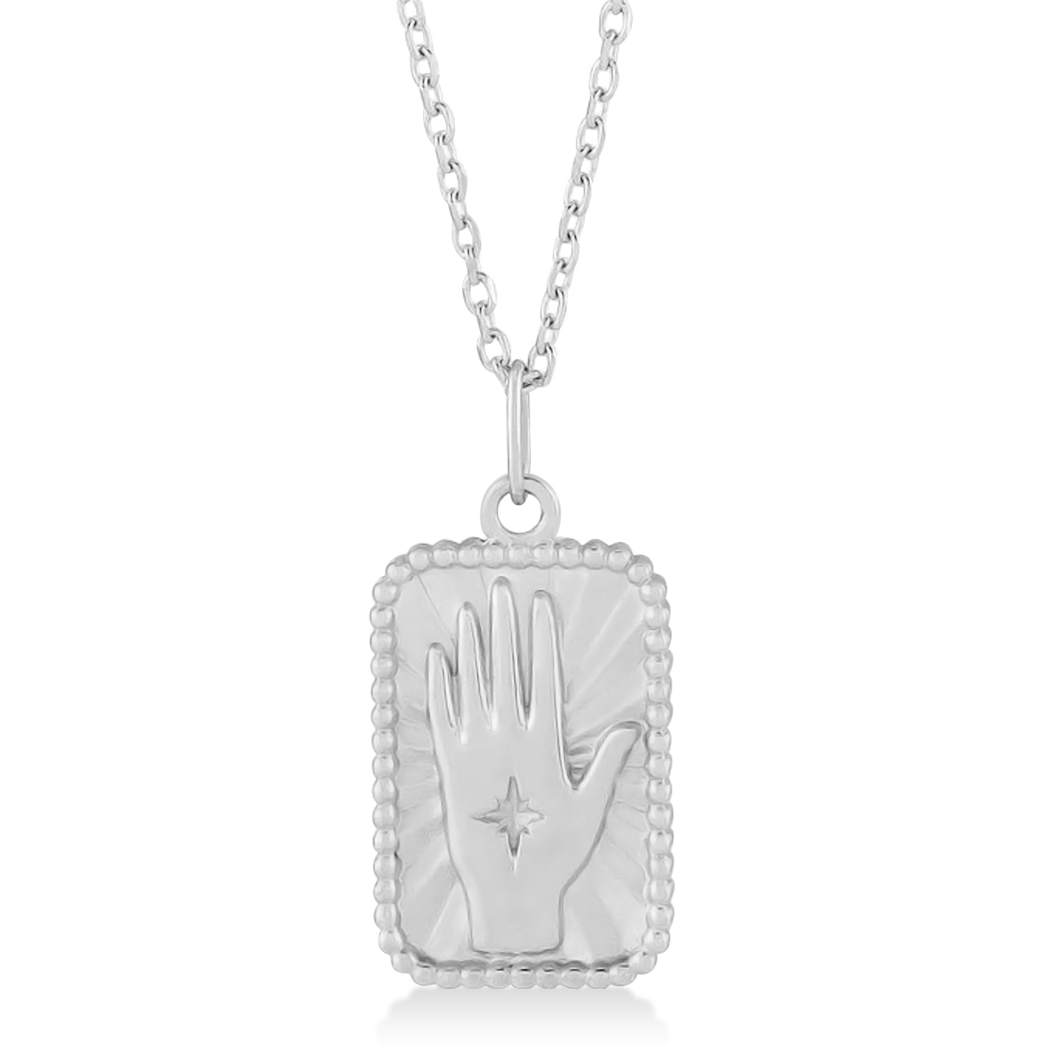 Hamsa Hand Tarot Pendant Necklace 14k White Gold