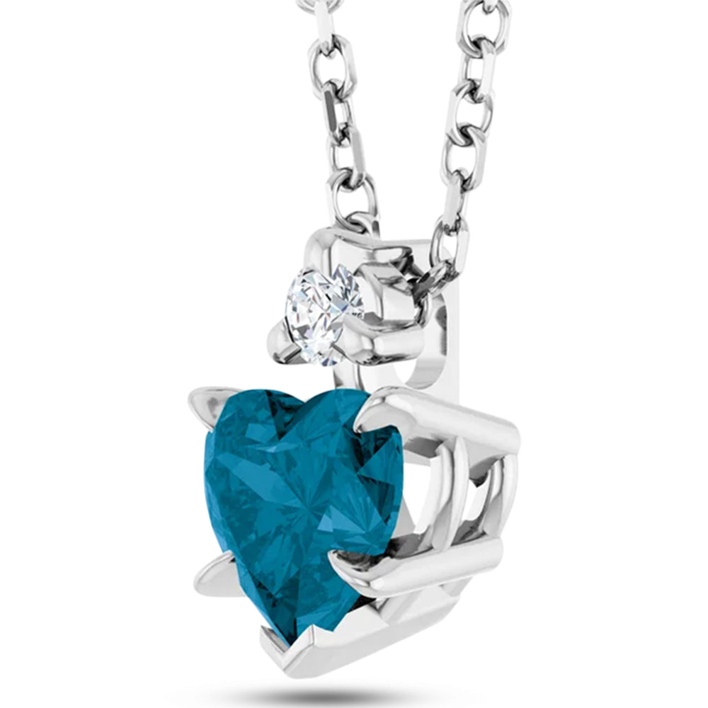 Heart Natural London Blue Topaz & Natural Diamond Pendant Necklace 14K White Gold (0.60ct)