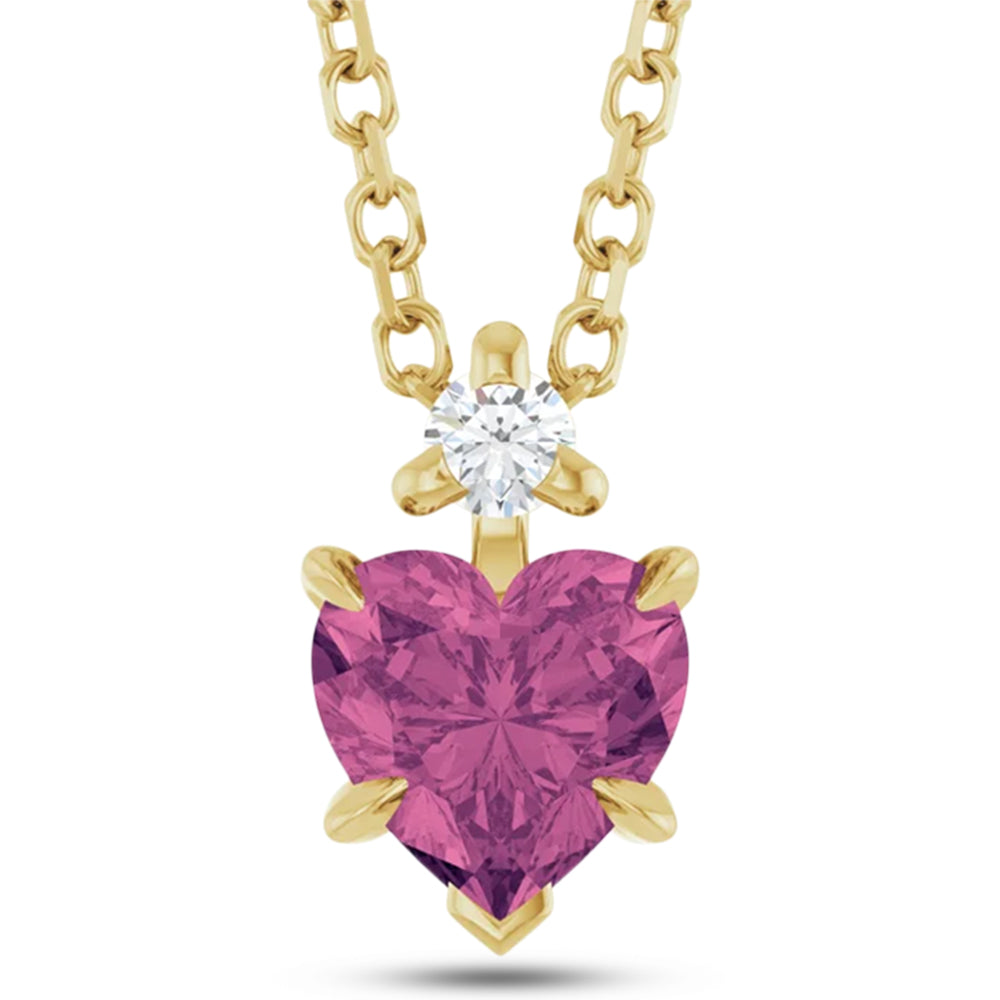 Heart Natural Pink Tourmaline & Natural Diamond Pendant Necklace 14K Yellow Gold (0.49ct)