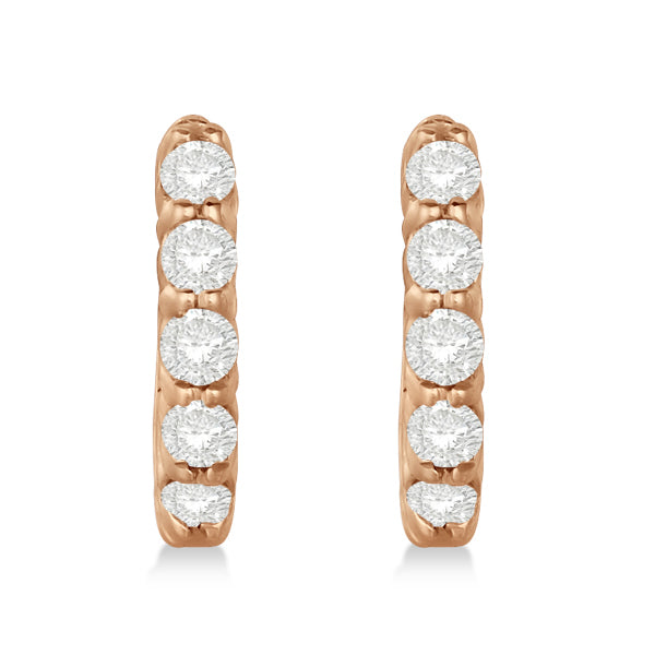 Featuring a brilliant modern huggie hoop design with 10 exquisite diamonds totaling a striking 0.33 carats. The prong set stones glisten along the 14k rose gold finish and might just make your friends a little jealous.