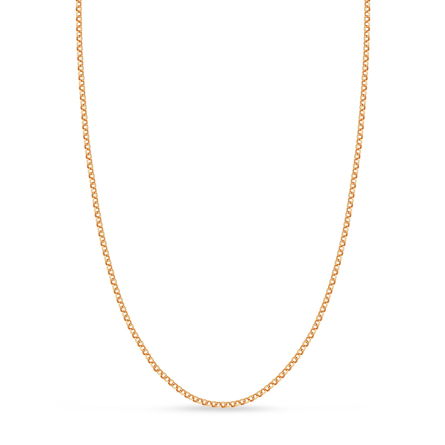 This rolo chain necklace is styled in 14K rose gold. The necklace secures with a secure lobster lock clasp.