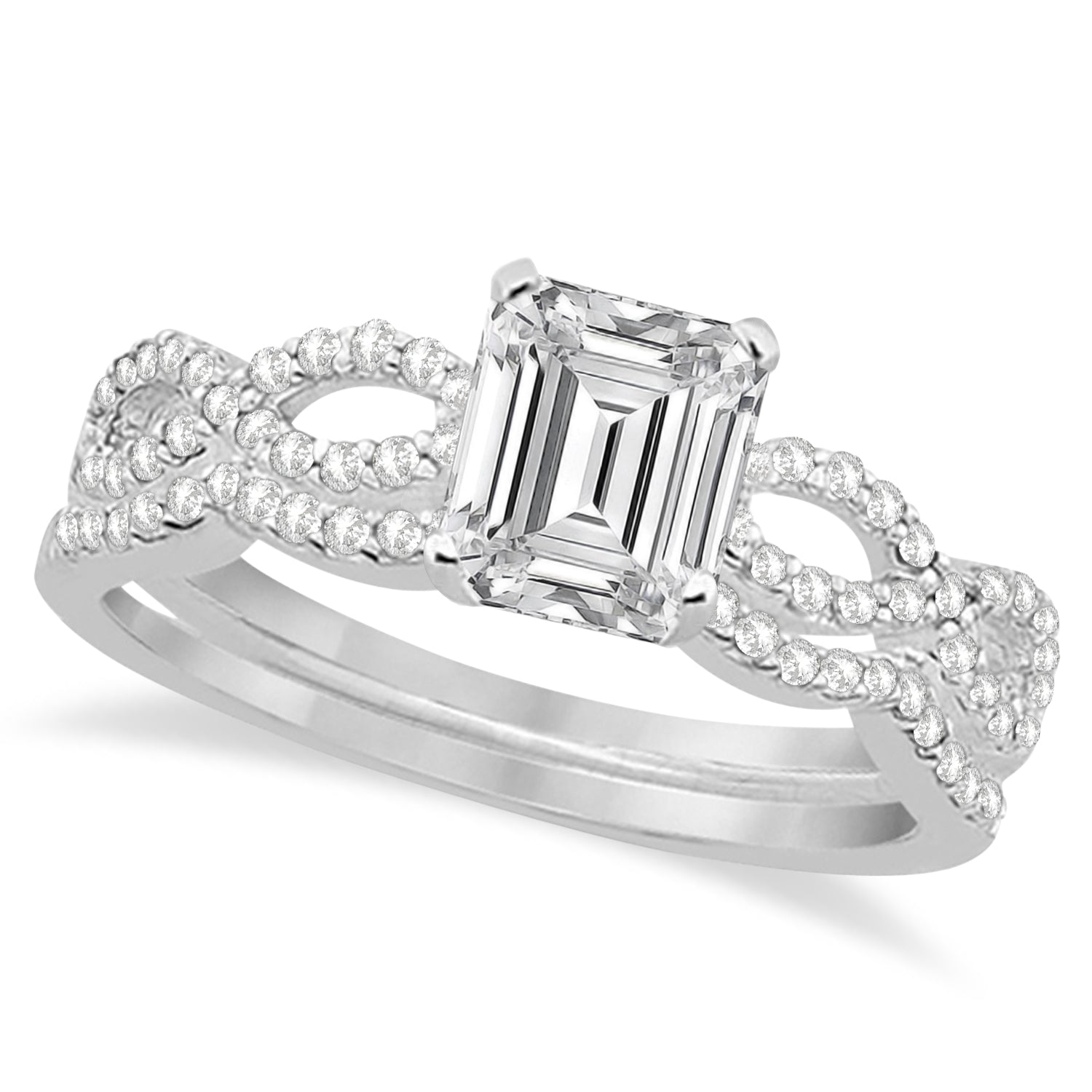 Infinity Emerald-Cut Diamond Bridal Ring Set 14k White Gold (0.63ct)