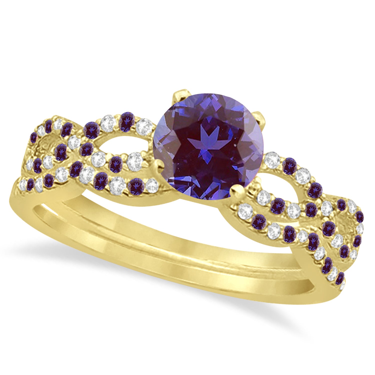 Infinity Style Alexandrite & Diamond Bridal Set 18K Yellow Gold 1.29ct