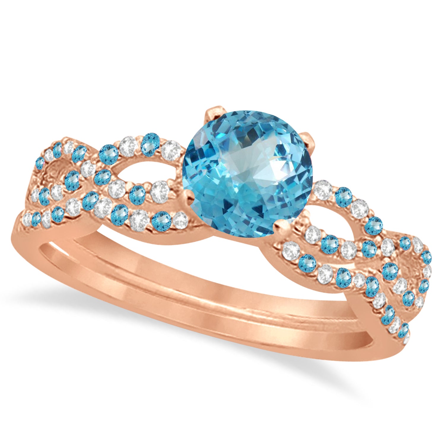 Infinity Style Blue Topaz & Diamond Bridal Set 18k Rose Gold 1.29ct
