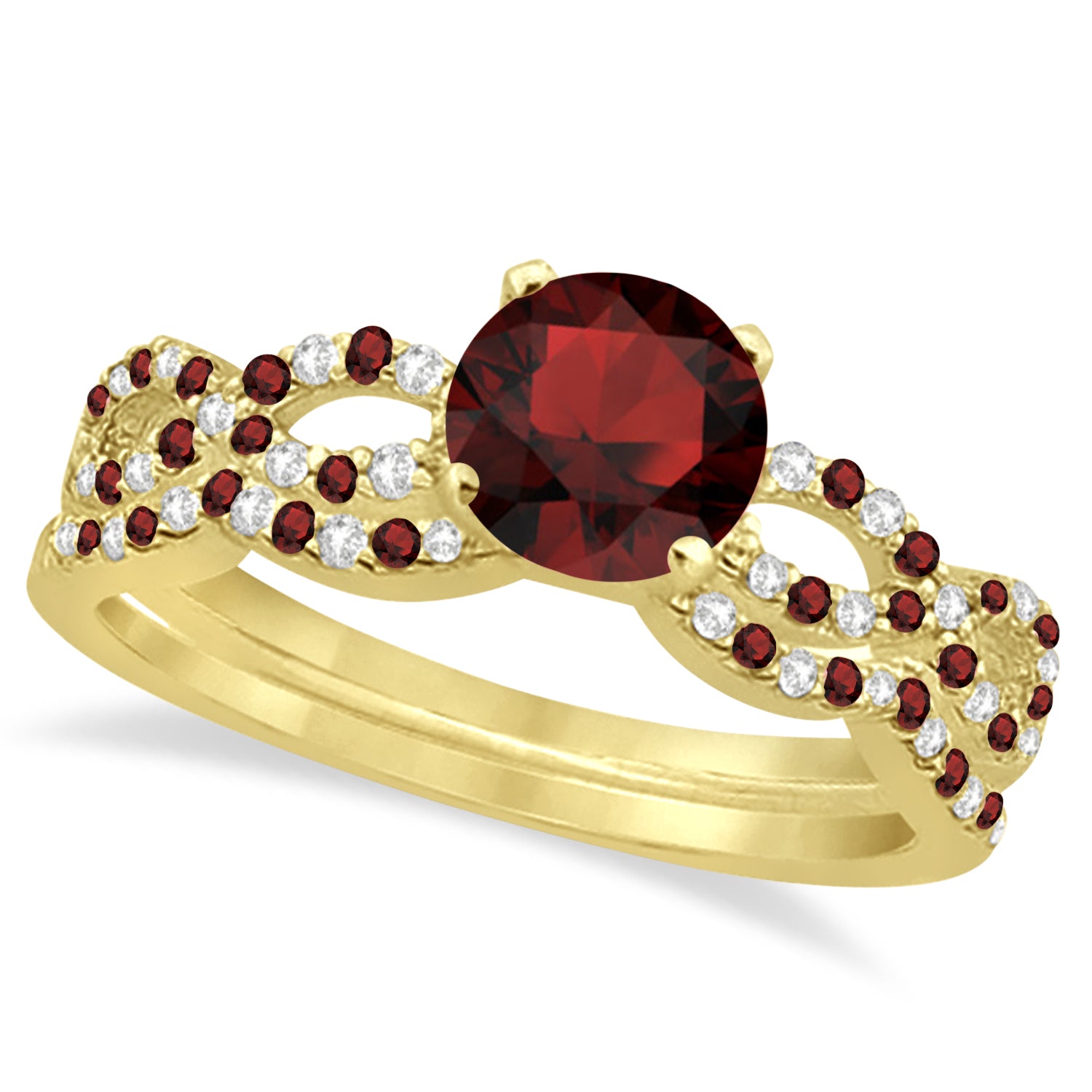 Infinity Style Garnet & Diamond Bridal Set 14k Yellow Gold 1.29ct