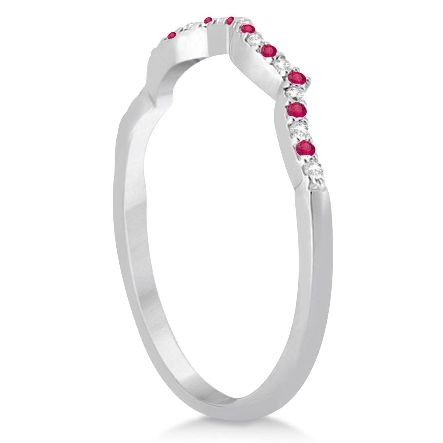 A match made in heaven, just like you and your bride-to-be, this infinity style ruby and diamond bridal set are destined to be together.