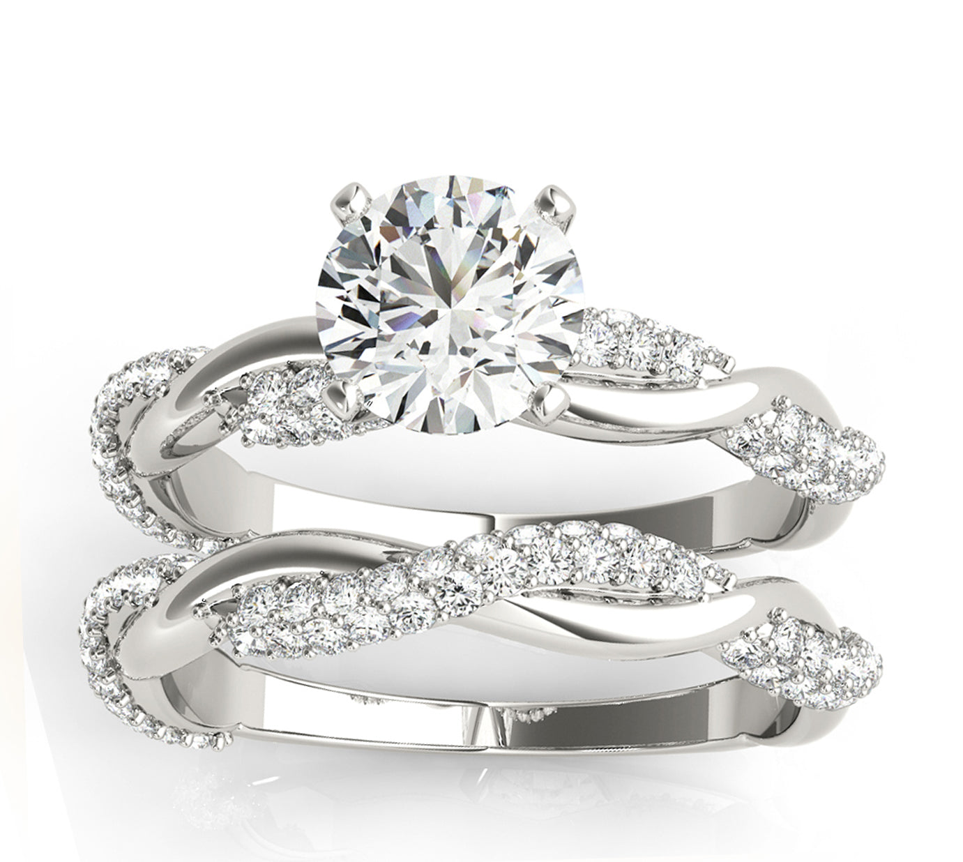 Designed and crafted in the USA, the Infinity Twist Diamond Bridal Ring Set Setting is available in other precious metals.