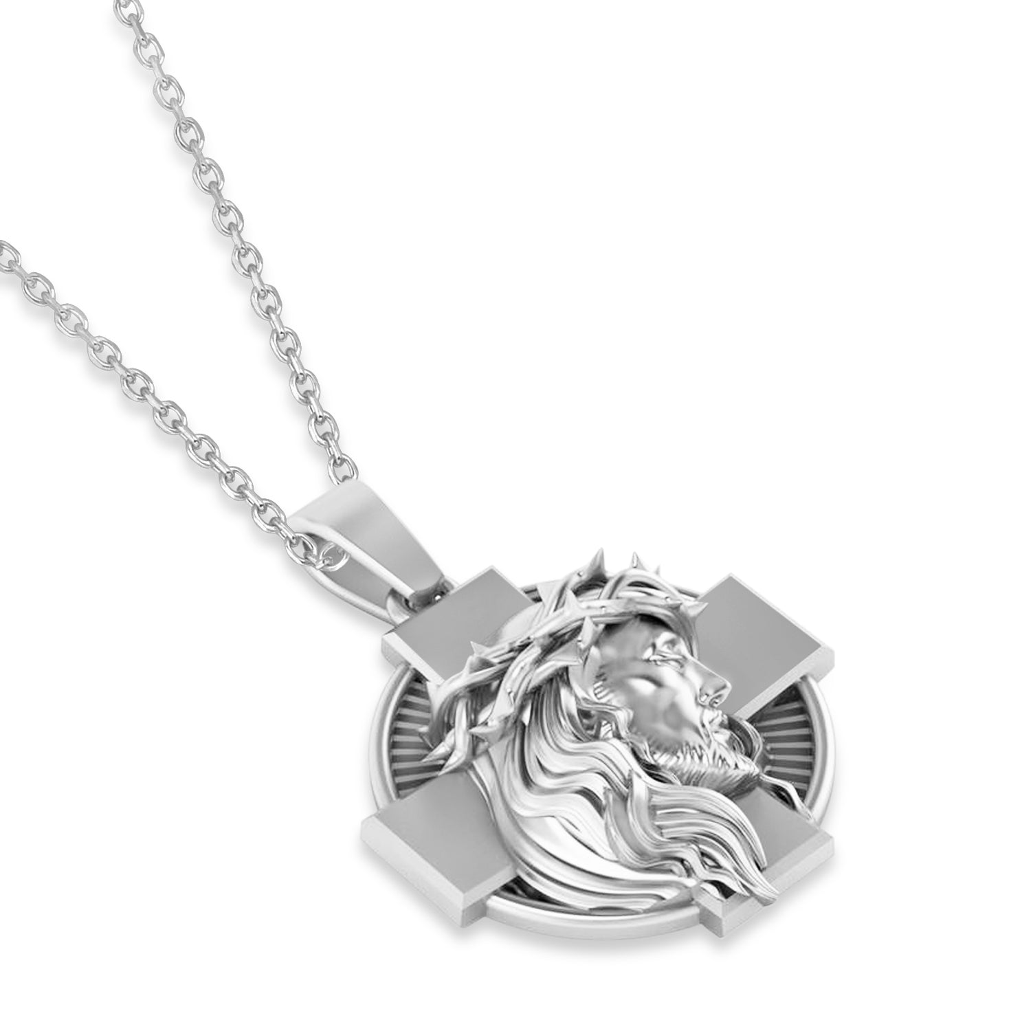 Express your faith with style, with this gorgeous 14k white gold Jesus Christ head cross pendant necklace.