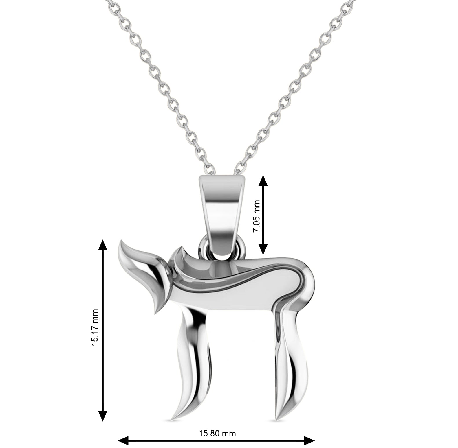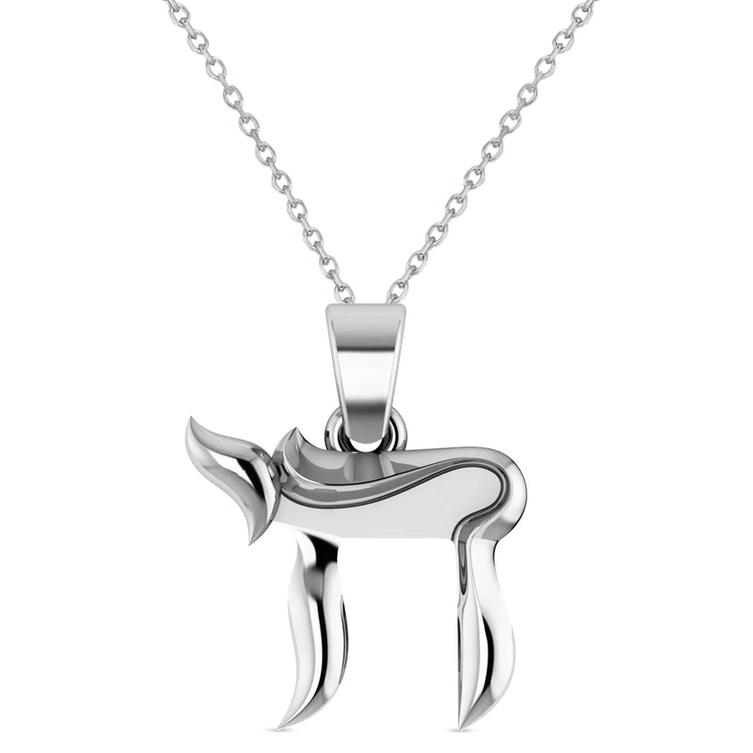 Jewish Chai Pendant Necklace 14K White Gold