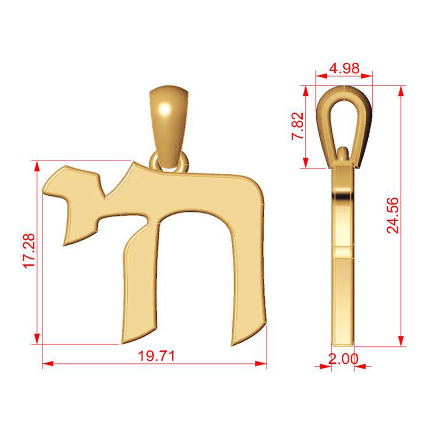 Jewish Chai Pendant Necklace 14K Yellow Gold