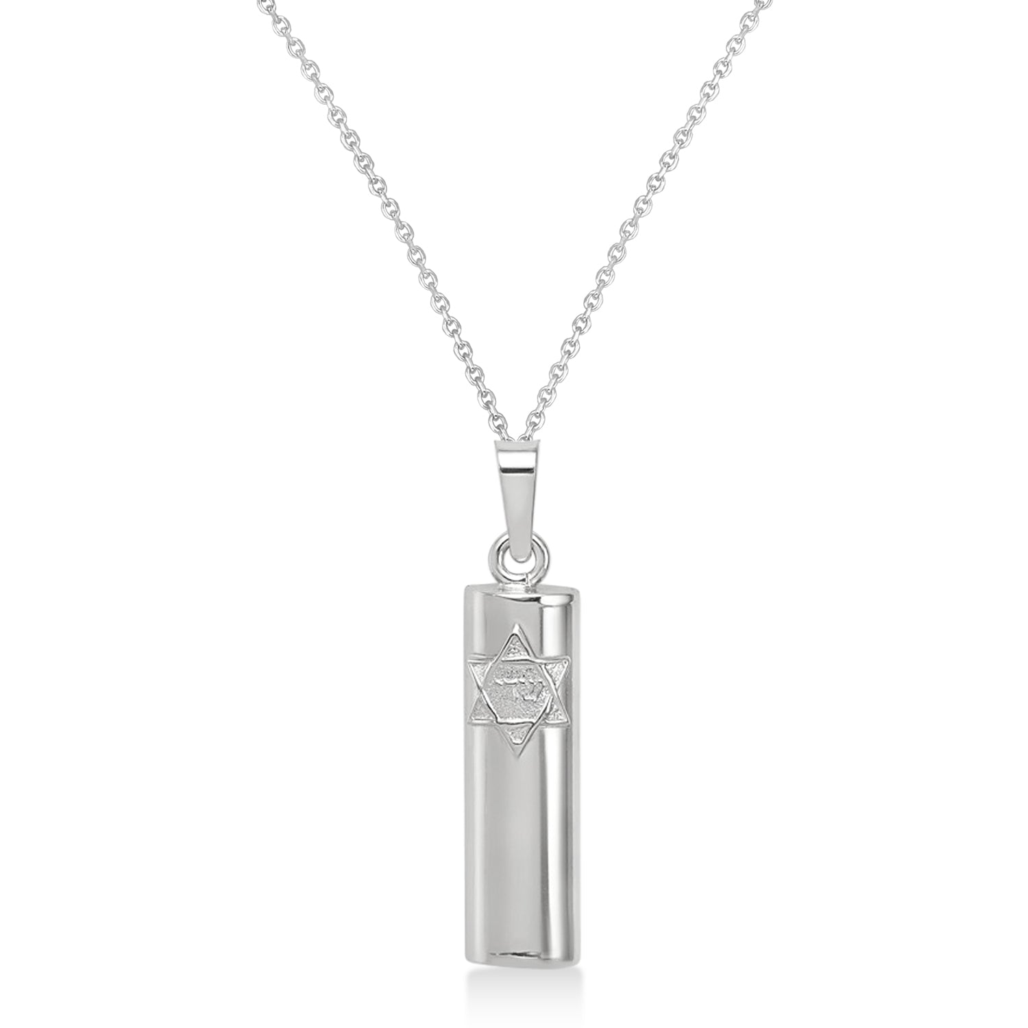Jewish Star Mezuzah Pendant Necklace Sterling Silver
