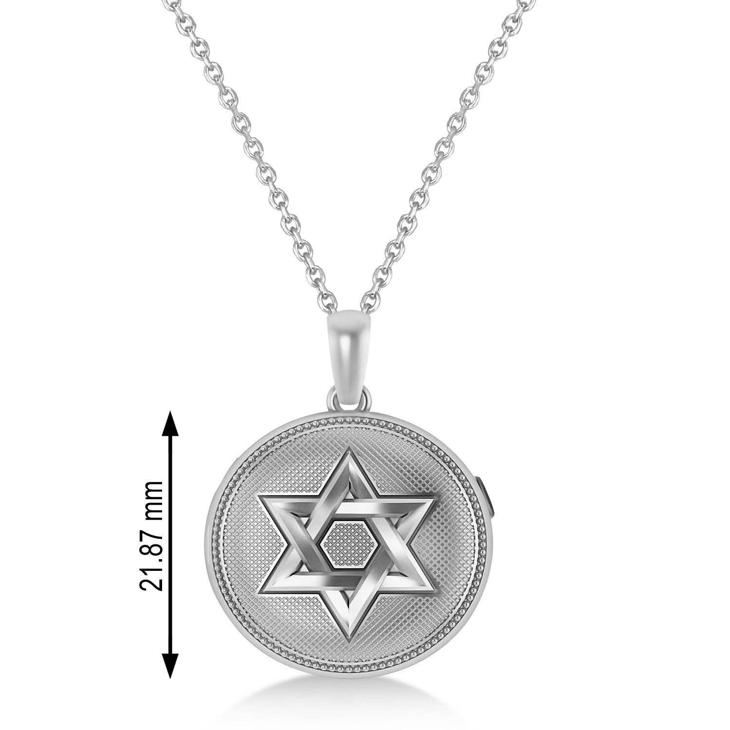 Jewish Star of David Locket Pendant Necklace 14K White Gold