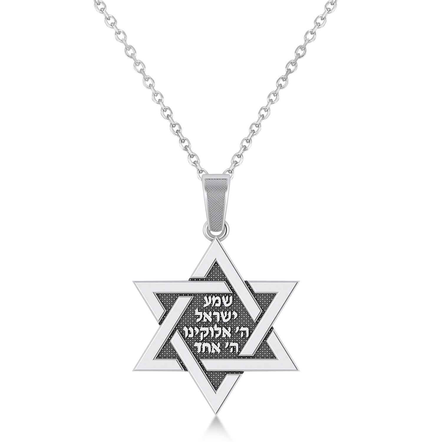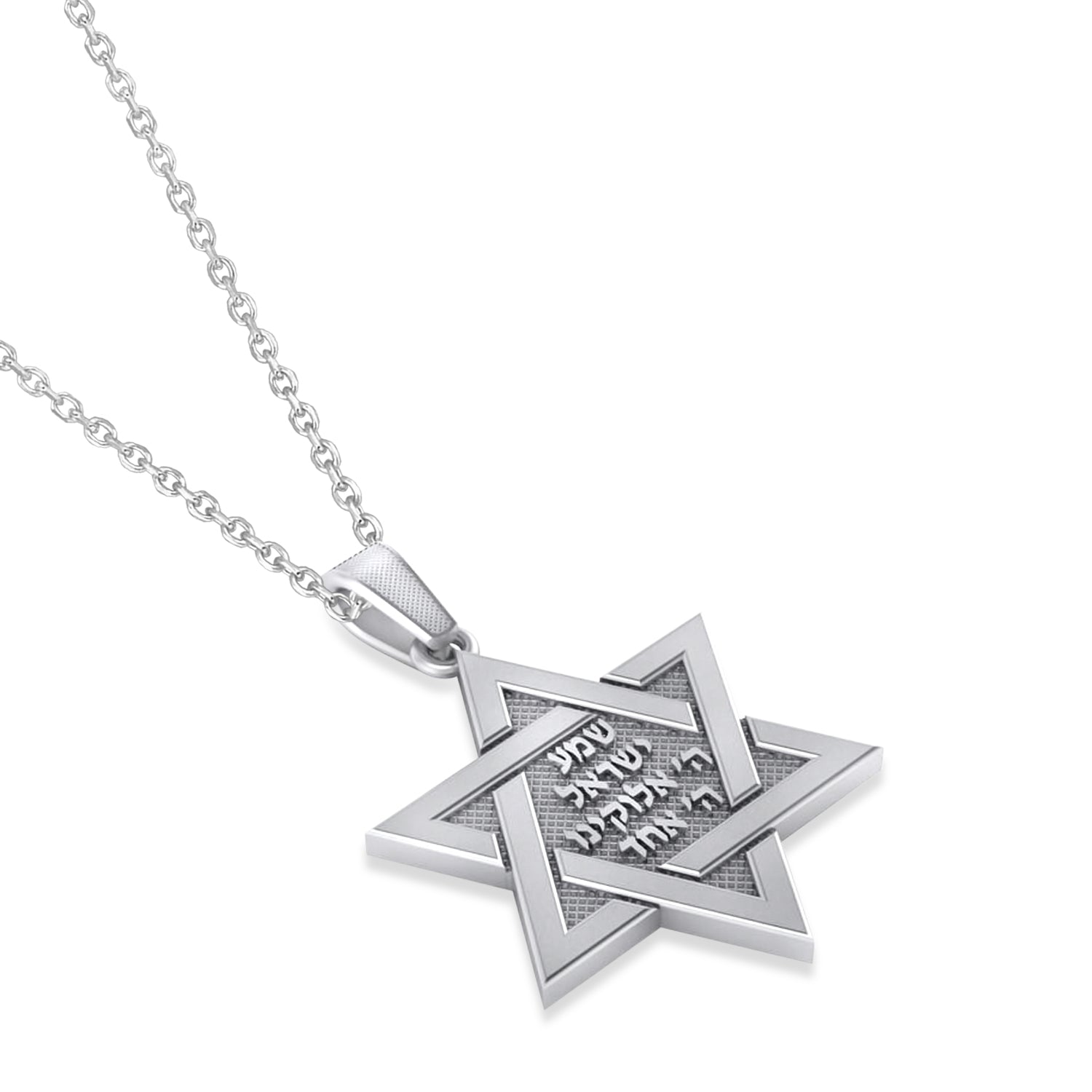 Jewish Star of David with Sheema Israel Prayer Pendant Necklace 14K White Gold