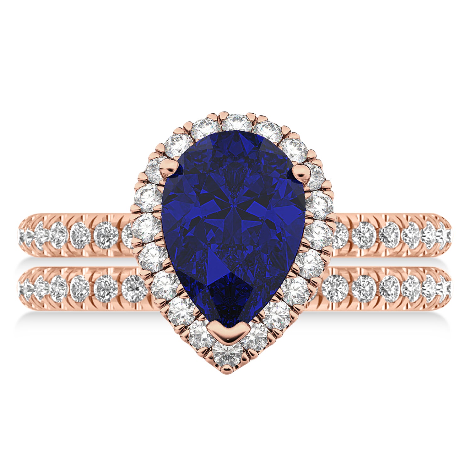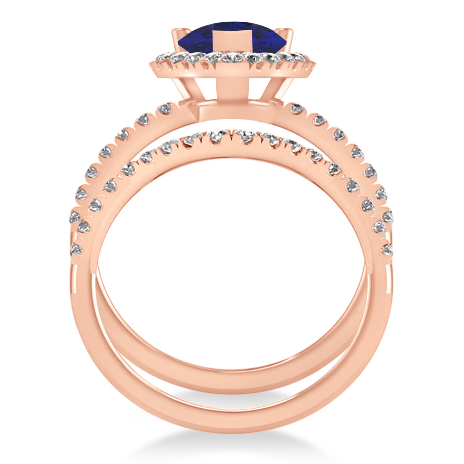 Lab Blue Sapphire & Lab Grown Diamonds Pear-Cut Halo Bridal Set 14K Rose Gold (3.28ct)