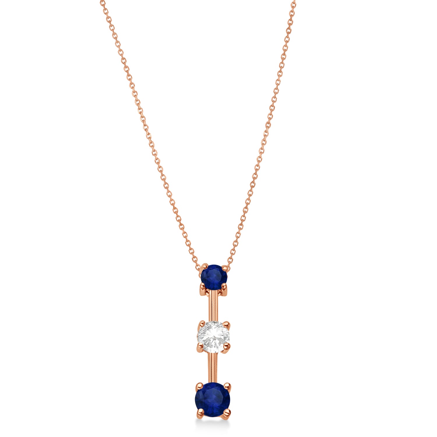 Lab Blue Sapphires & Lab Diamond Three-Stone Necklace 14k Rose Gold (0