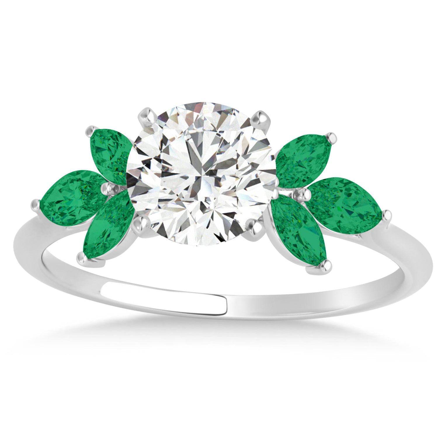 Propose with this stunning, flaunt-worthy marquise floral engagement ring that includes six lab emerald side stone accents of 0.50ct, prong set in 14k white gold to scatter brilliance in all directions. The gemstones are set in in the flower shaped halo frame around a center stone of your choice.