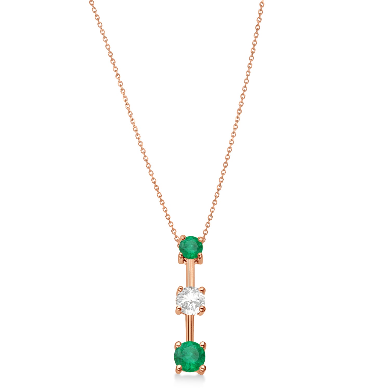 Lab Emeralds & Lab Diamond Three-Stone Necklace 14k Rose Gold (0.25ct)