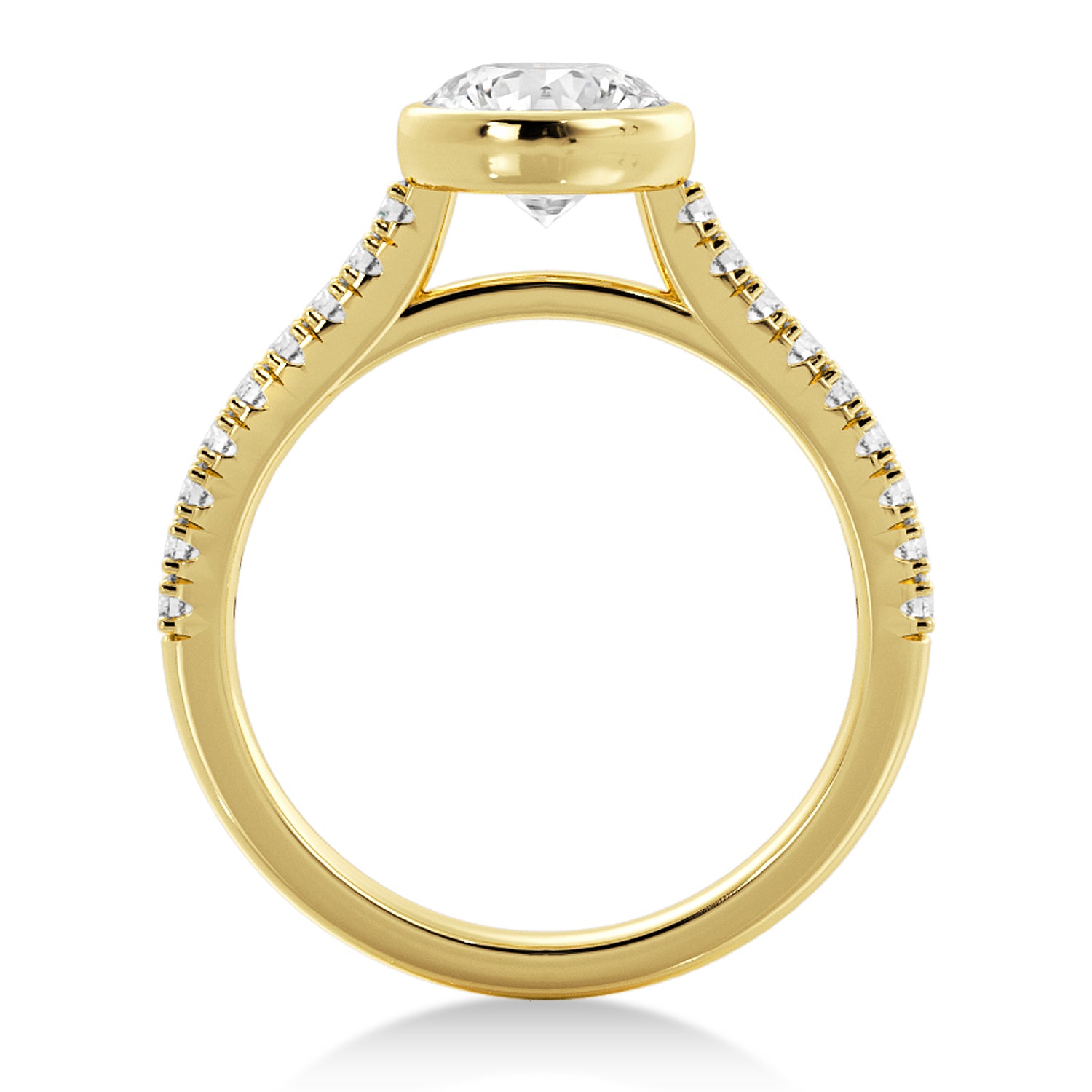 Lab Grown Bezel Set Diamond Accented Engagement Ring 18k Yellow Gold (