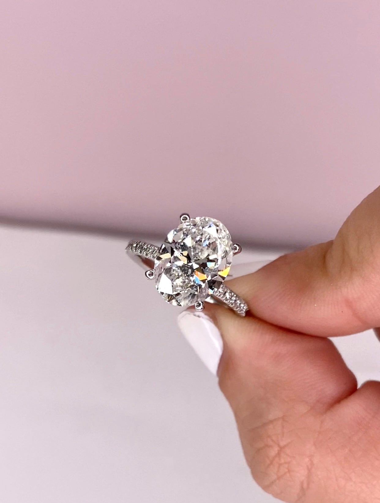 Lab Grown Diamond Accented Oval Shape Engagement Ring 14k White Gold (