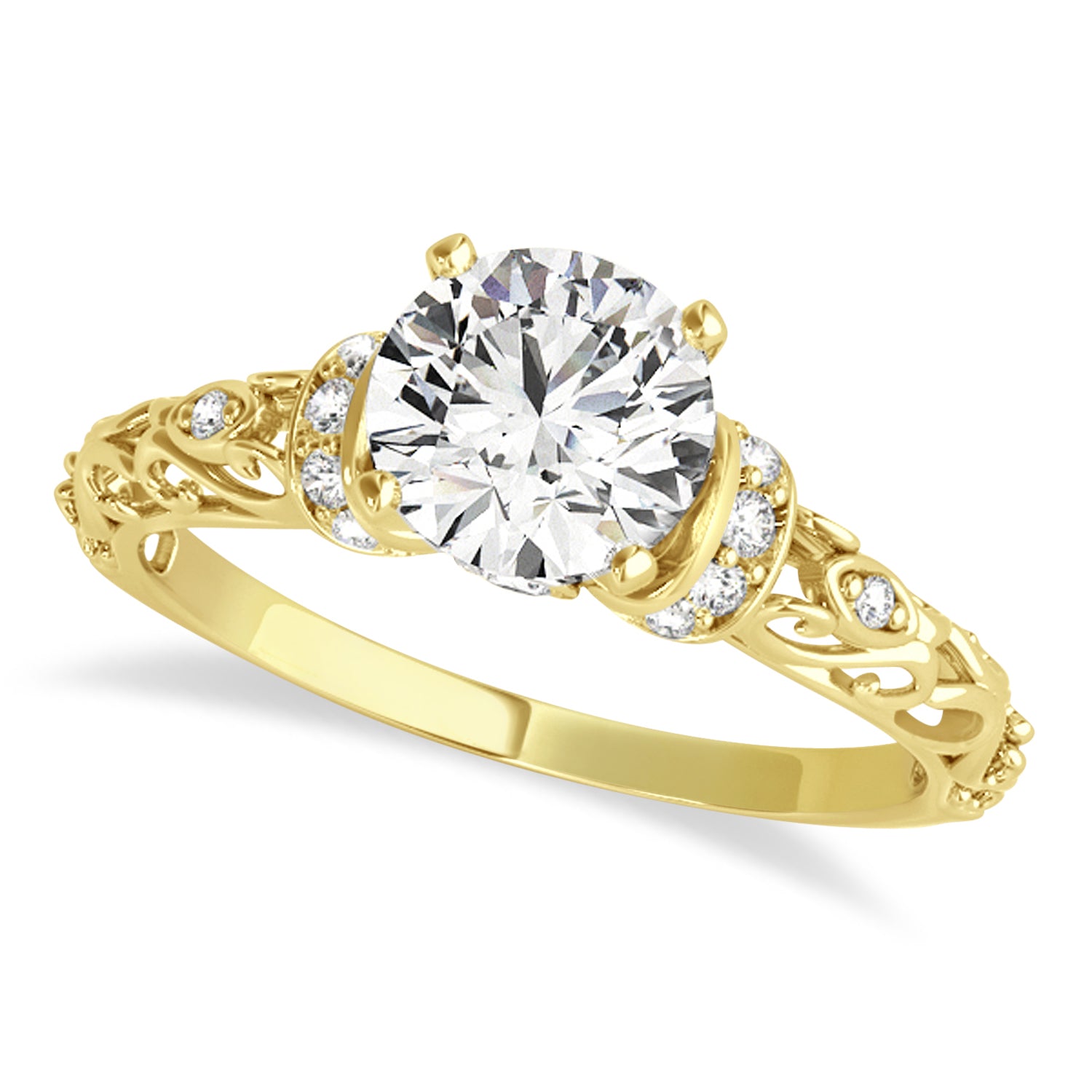 Lab Diamond Antique Style Bridal Set Setting 14k Yellow Gold (0.12ct)