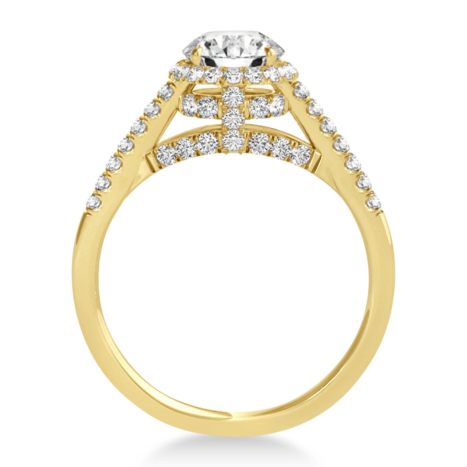 This beautiful engagement ring is designed with a hidden halo setting to hold a center stone of any carat, cut, clarity and color. Choose the stone that is the best fit for your future fiancee in this unique ring setting.