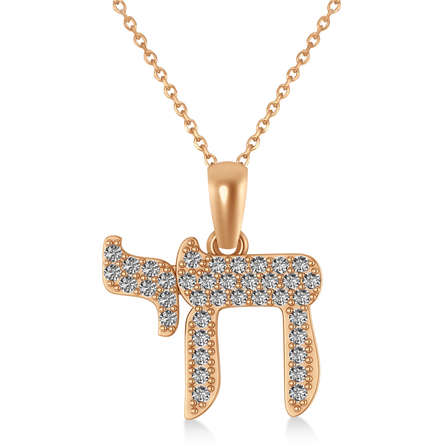 Lab Grown Diamond Jewish Chai Pendant Necklace 14K Rose Gold (0.57ct)