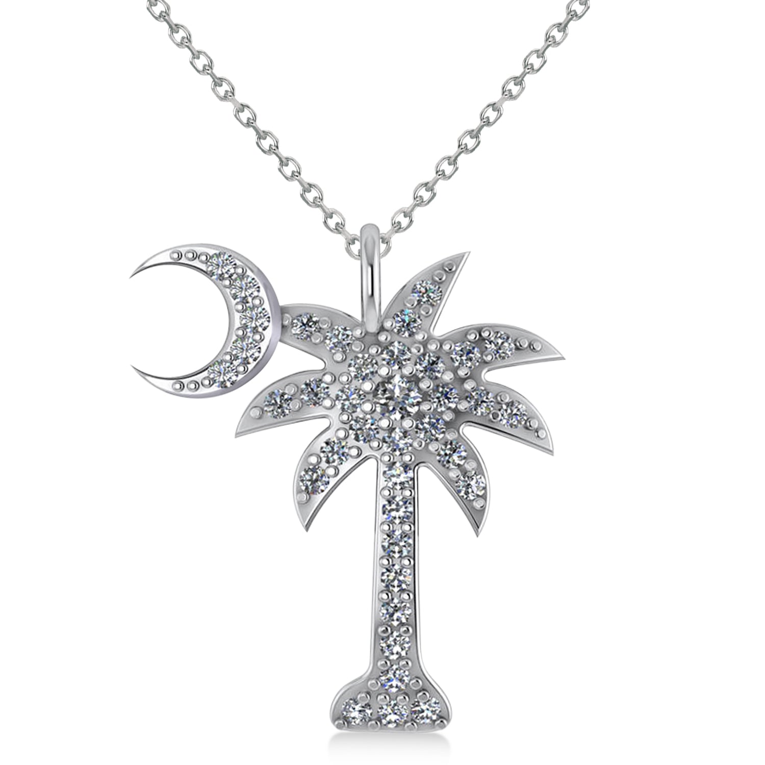 Inspired by coastal living, the South Carolina Palmetto & Crescent Moon pendant necklace showcases 38 round Lab Grown Diamonds expertly prong set in 14K White Gold. Each glittering, near-colorless stone is rated G-H for color and SI1-SI2 for clarity, with a combined 0.81 total carat weight.