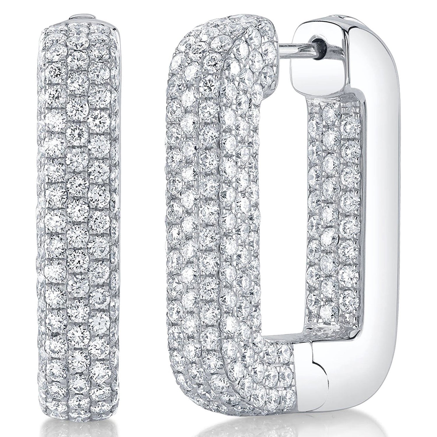 Discover the brilliance of Lab-Grown Diamond Pave Rectangle Hoop Earrings in 14K White Gold. Featuring 4.20 carats of lab-grown diamonds with VS1 clarity and Color F-G, these stunning earrings offer exceptional sparkle and elegance. The modern rectangle hoop design is encrusted with pave-set diamonds, making them a perfect accessory for both special occasions and everyday wear.
