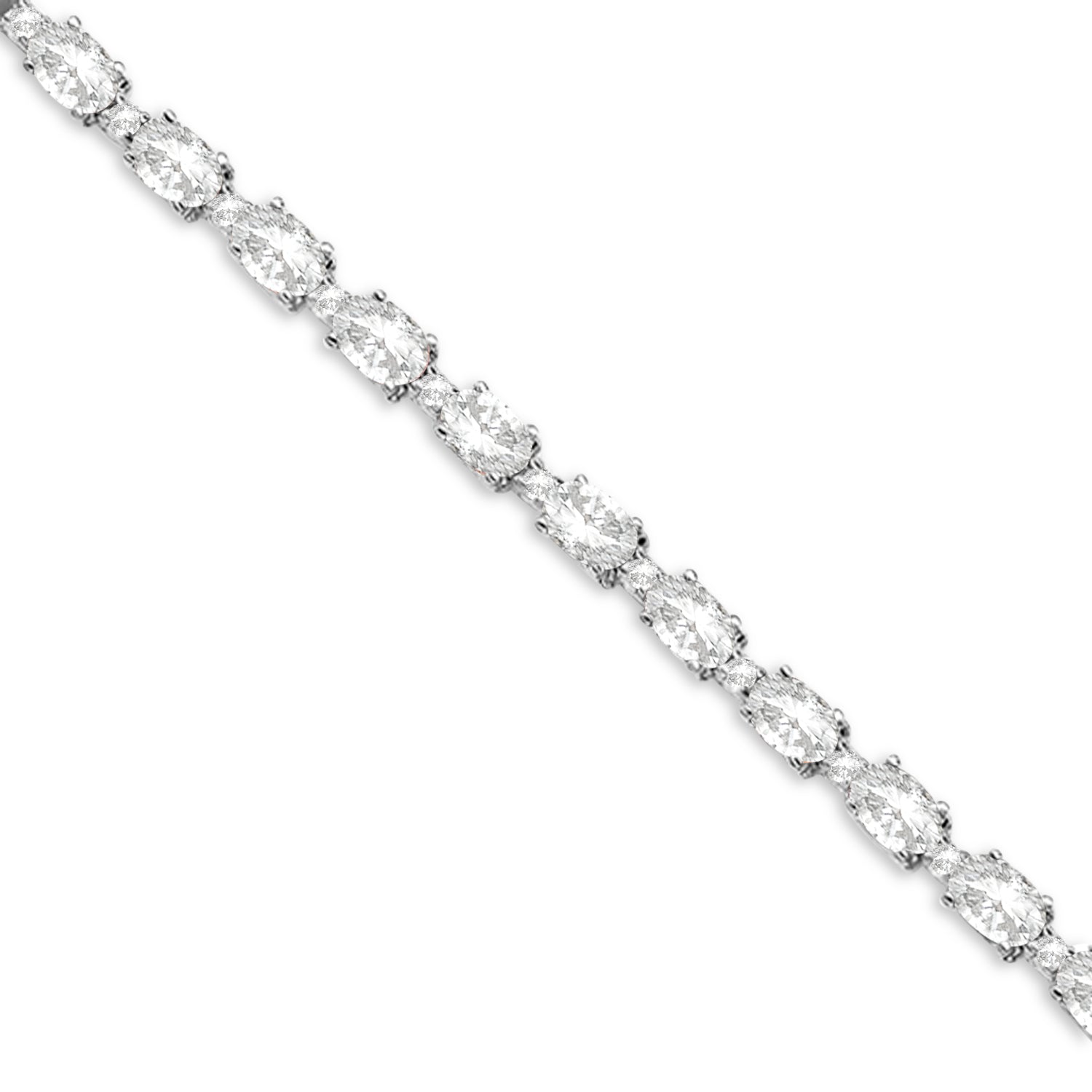 This dazzling oval lab grown diamond link tennis bracelet is carefully crafted in 14kt White Gold. This stylish diamond tennis bracelet features twenty-one oval cut 6x4mm lab grown diamonds that alternate with 21 brilliant round cut lab grown diamonds.