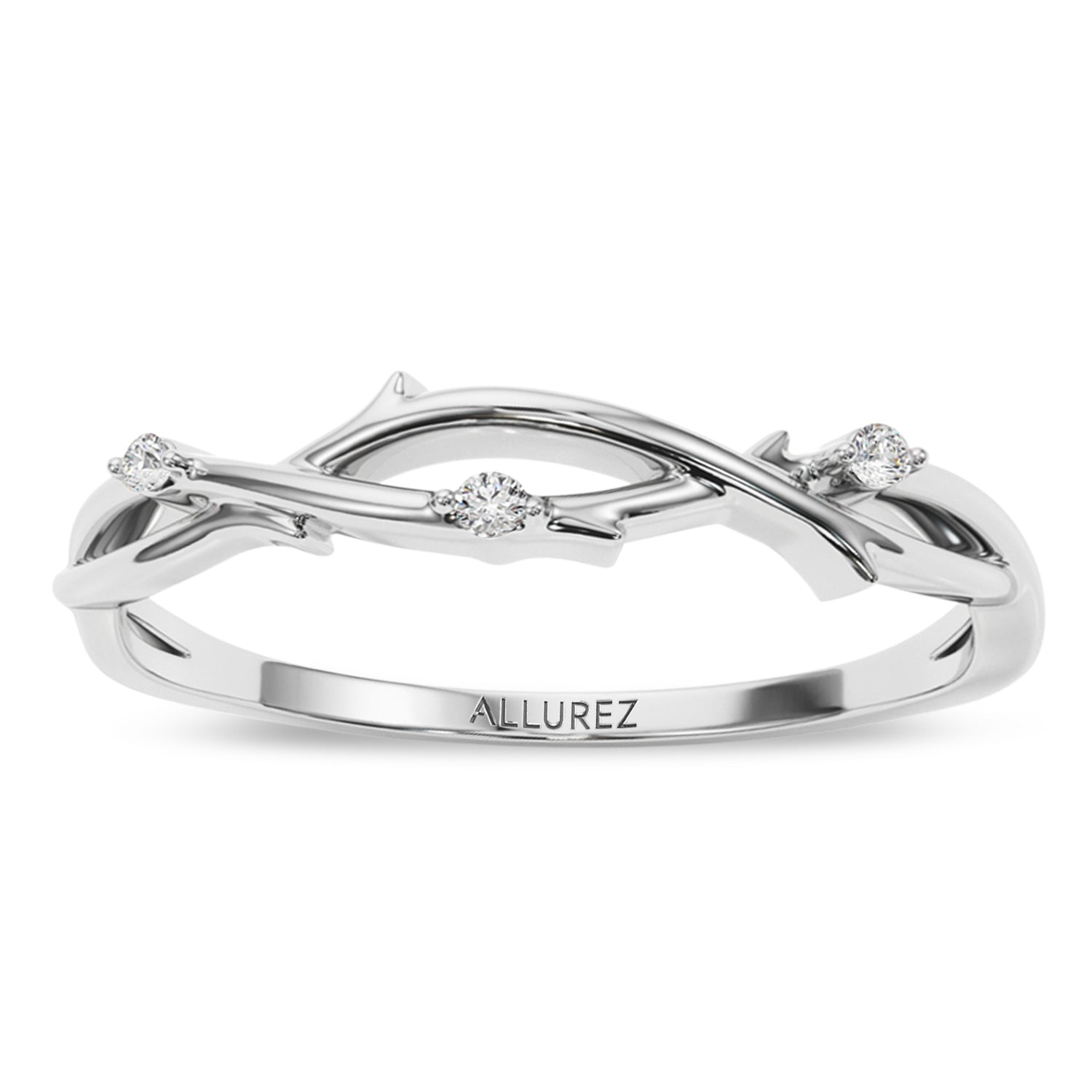 Lab Grown Diamond Vine Leaf Ring Wedding Band 14K White Gold (0.03ct)