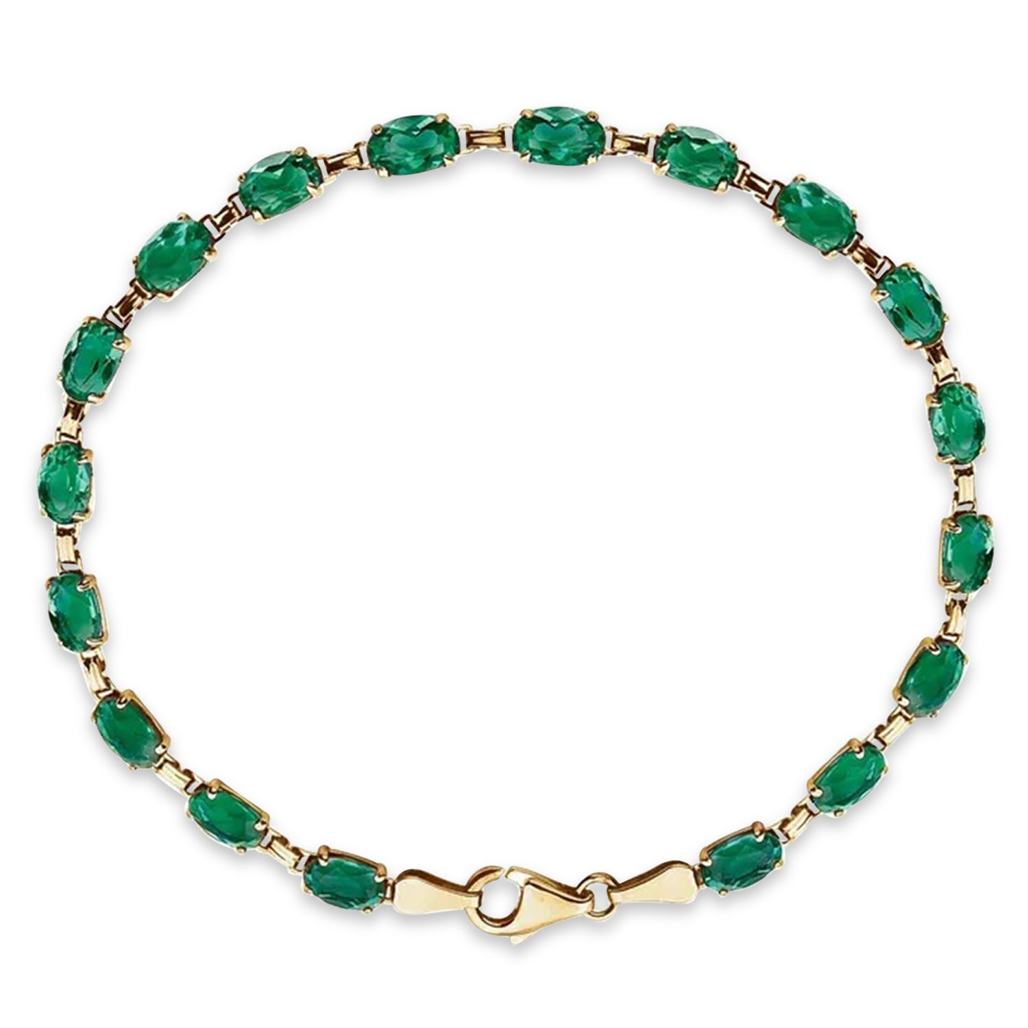 Embrace sophistication with our Lab Grown Emerald Bracelet, meticulously crafted in 14K Yellow Gold. Each Lab Grown emerald gemstone boasts a rich, verdant hue, beautifully complemented by the brilliance of yellow gold. This bracelet exudes timeless elegance, making it a perfect accessory for both casual and formal occasion